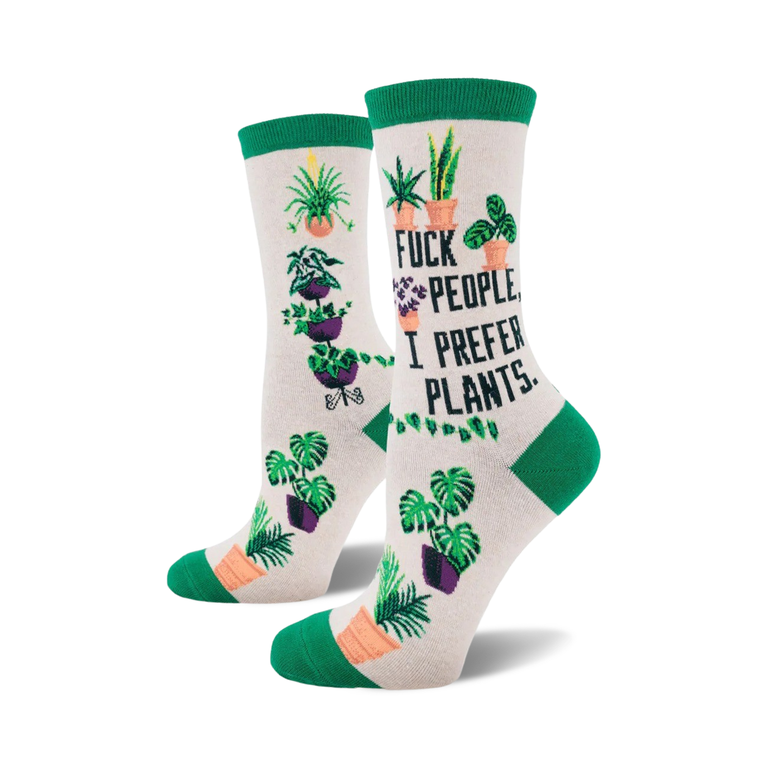 Get ready to add a touch of green to your everyday wardrobe with our "I Prefer Plants" socks! Picture this: white socks with a vibrant green cuff and a cheerful pattern of potted plants adorned all over. As if that wasn't enough, these socks make a bold statement with the words "Fuck People, I Prefer Plants" proudly displayed. Embrace your inner plant lover and let your feet do the talking!
