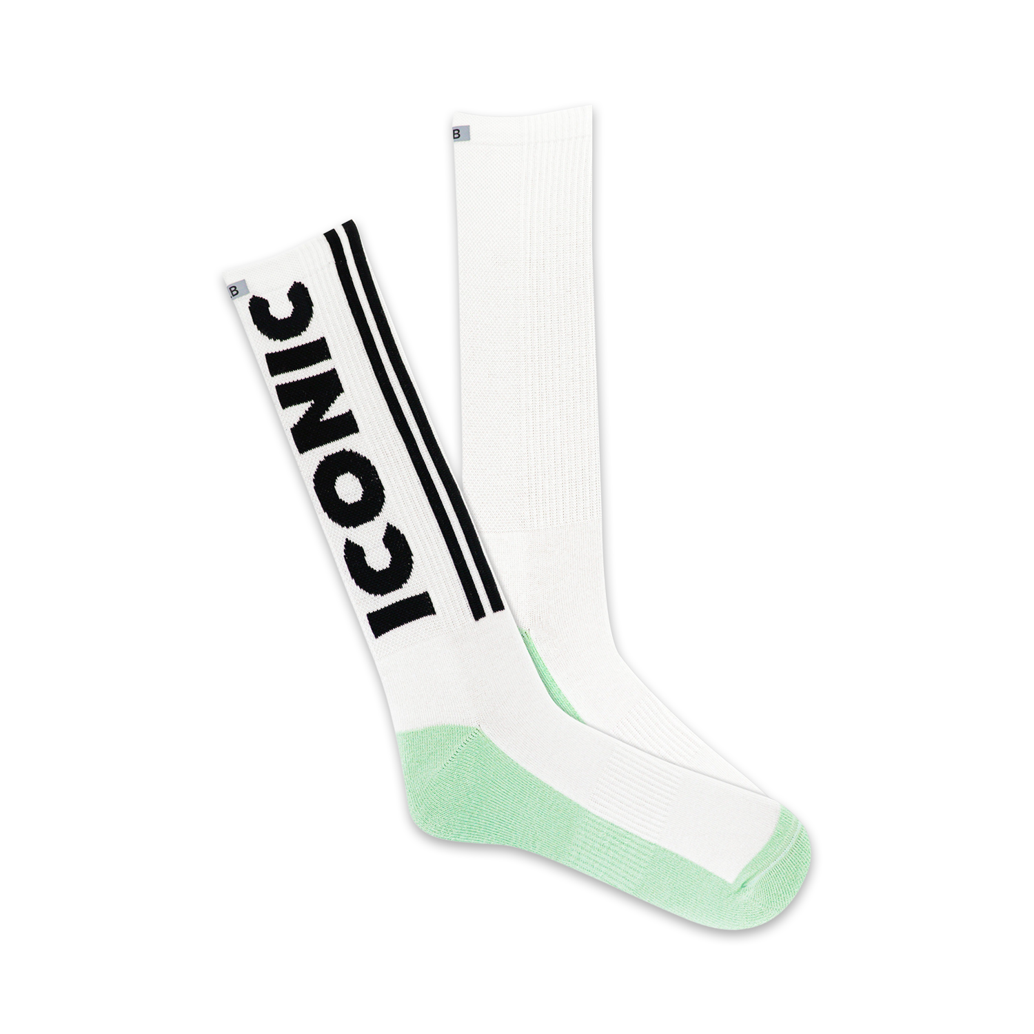 Why settle for boring socks when you can have ICONIC socks? These white, black, and green socks feature the word "iconic" written vertically in big, bold letters. Whether you're hitting the gym or just running errands, these socks will let everyone know that you're an icon in the making.
