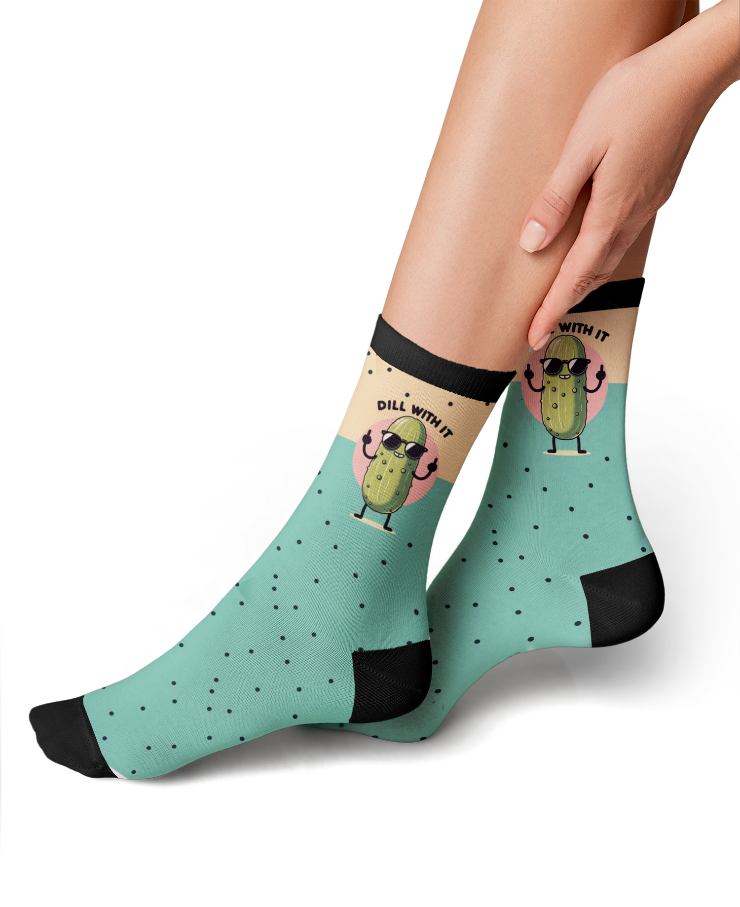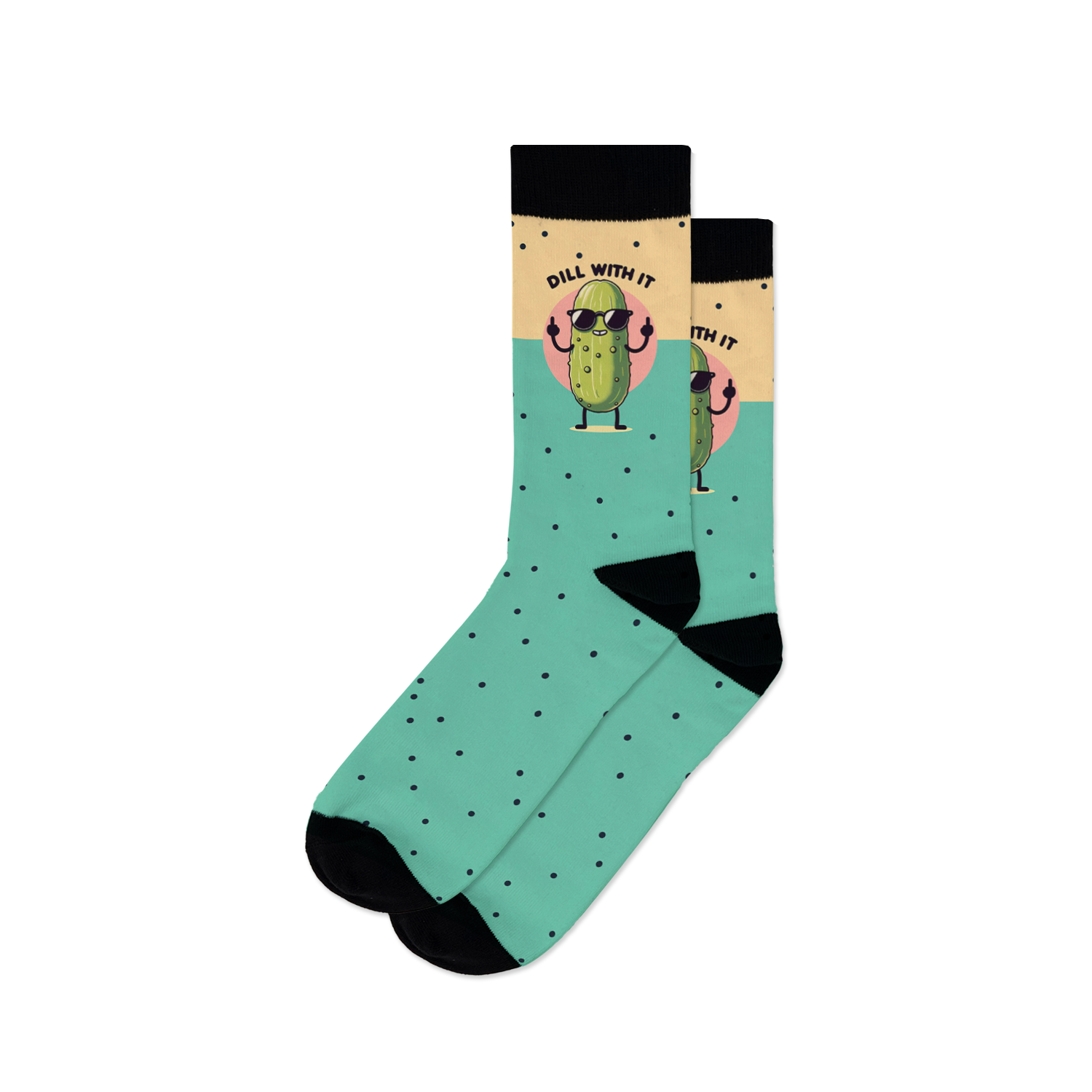 Say sayonara to boring socks and embrace the sheer absurdity of Just Dill With It novelty socks. The chunky cucumber, complete with shades and crossed arms, is the epitome of cool, telling the world you're one cool pickle. And who wouldn't want pickles on their feet? Exactly, no one. So, dill with it, rock 'em with pride, and let your feet do the talking.