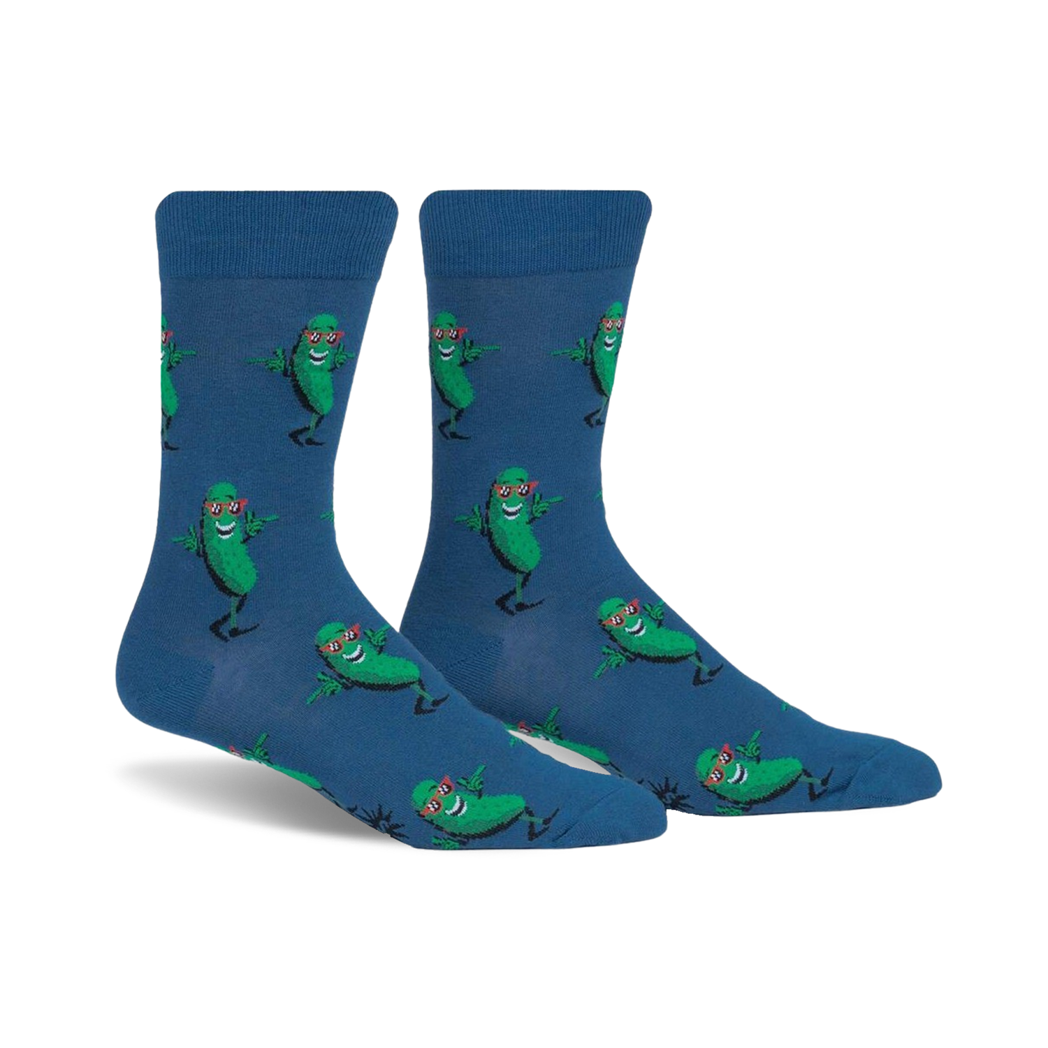 Calling all pickle-lovers! Our Kind of a Big Dill socks are here to add a dash of fun to your footwear. Picture this: a crew length sock, drenched in an all-over print of cartoon pickles. These pickles aren't just ordinary veggies; they're rockin' shades, arms, and legs, ready to take over your sock drawer. Slip on a pair, and let these cool cukes become your new go-to accessory, perfect for adding a pop of personality to any outfit. It's time to embrace your inner pickle-thusiast and show the world your fresh and funky style.