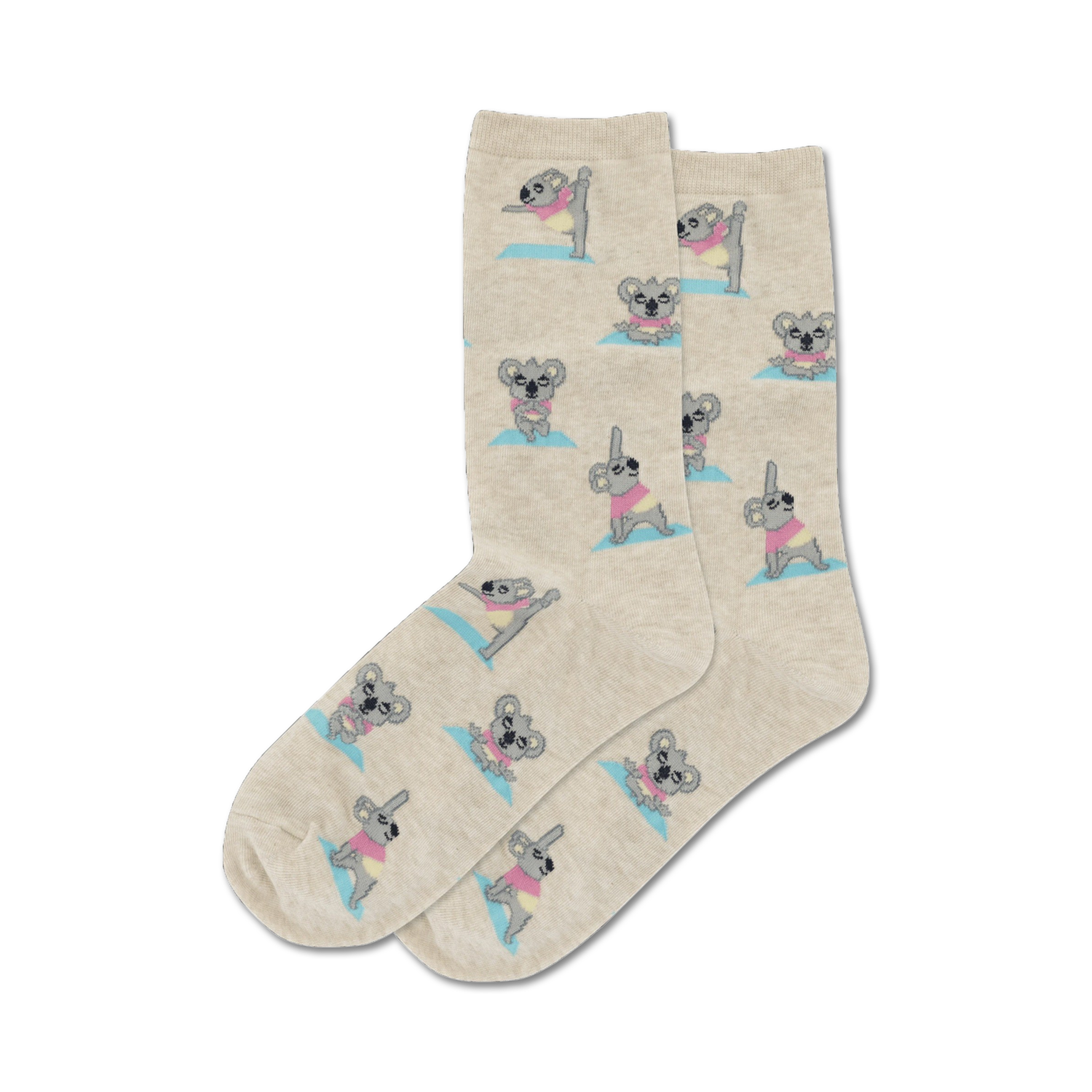 Koala-ty socks for your feet! Picture this: a crew of koalas doing yoga in bright pink on soft fabric against your skin. These fun women's socks will keep your feet warm while you channel your inner Zen and get those downward-facing dog stretches in. Koala-ty approved!