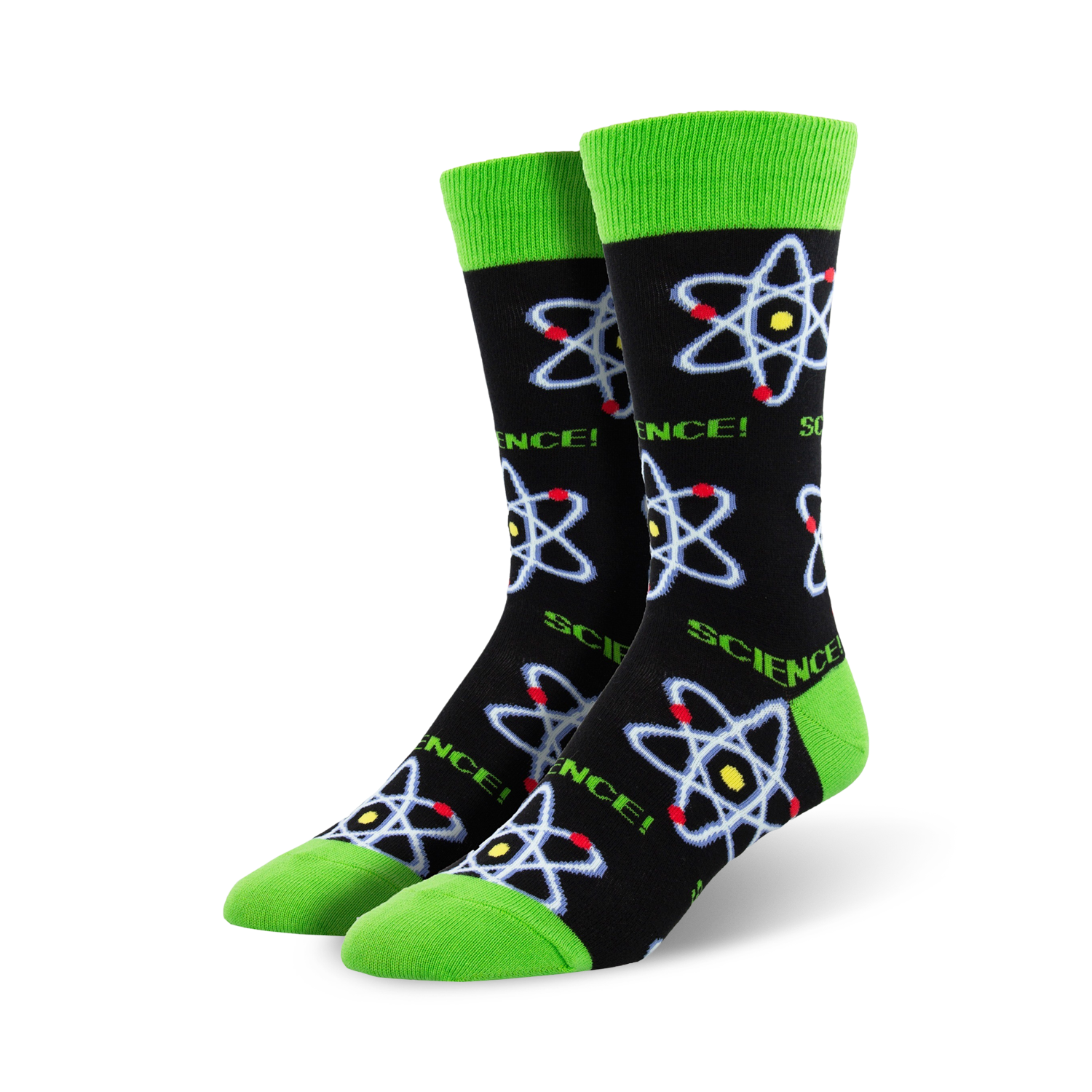 Who needs a nuclear reactor when you can rock these atomic socks? These stylish socks feature a repeating pattern of atoms with yellow nuclei and red electrons. The green toe and heel add a pop of color to these fun and educational socks. Perfect for the science enthusiast in your life.