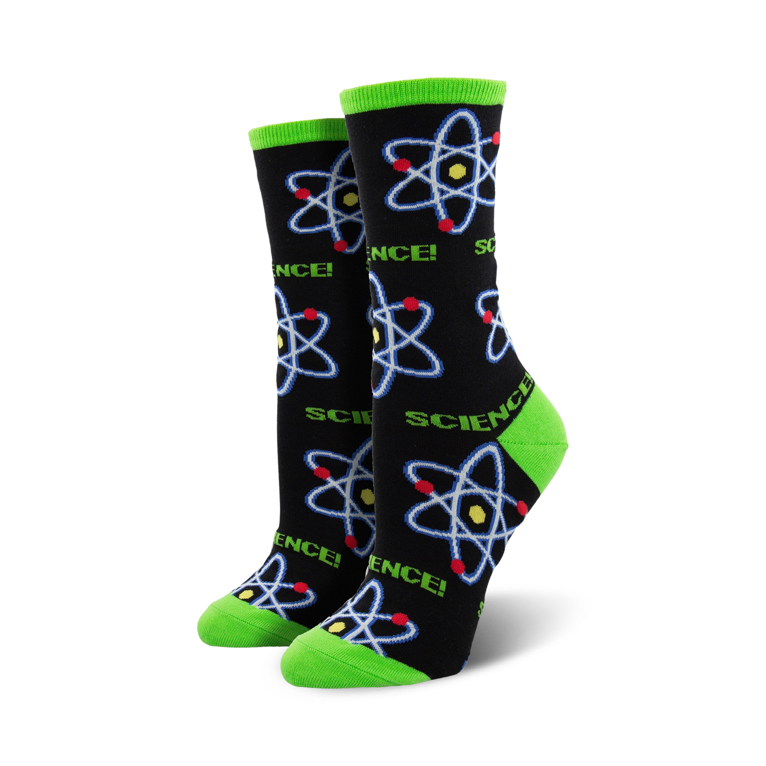 Get ready to geek out over these rad Lemme Atom socks that'll make your feet the epicenter of science fashion! Featuring a constellation of atoms with a nucleus that reads "Science," and three red electron rings and two blue ones, these socks are bound to cause a reaction wherever you go. Let your feet explore the wonders of the microscopic world in these cosmic crew socks. They're the perfect way to add some fun and education to your everyday wardrobe.