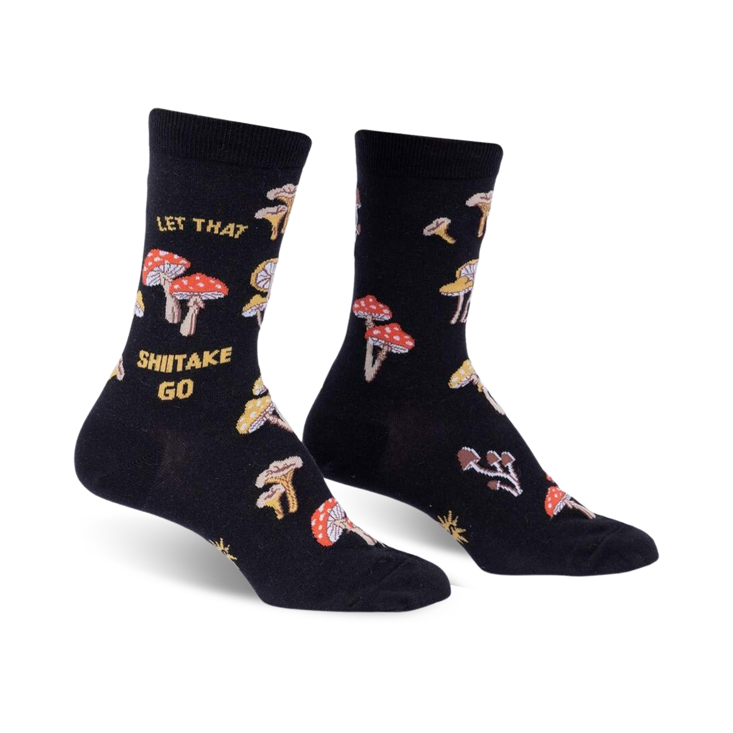 Lost limbs? No biggie for these fantastic fungi! Let the shroom-obsessed in your life step into these cozy crew socks and live their most fun-gi life. Featuring a bright all-over pattern of wild mushrooms in beautiful colors and the phrase, 'Let That Shiitake Go', these socks will have you lookin' fly and ready to tackle any obstacle life throws your way.