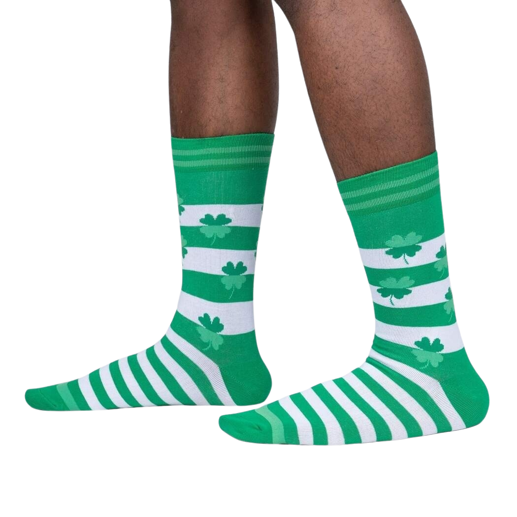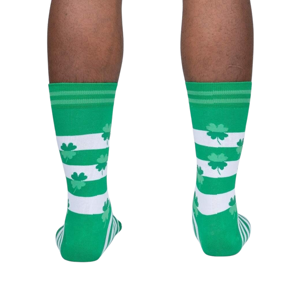 ðŸ€Lucky You 🀠mid-calf crew socks are ready to bring you the luck of the Irish! Our crew length white socks are adorned with cheerful green stripes and four-leaf clovers, the ultimate St. Patrick's Day accessory! Celebrate your Irish spirit in toe-tally adorable fashion. Post a pic on Insta to make your friends green with envy!ðŸ€ðŸ§¦ðŸ’š