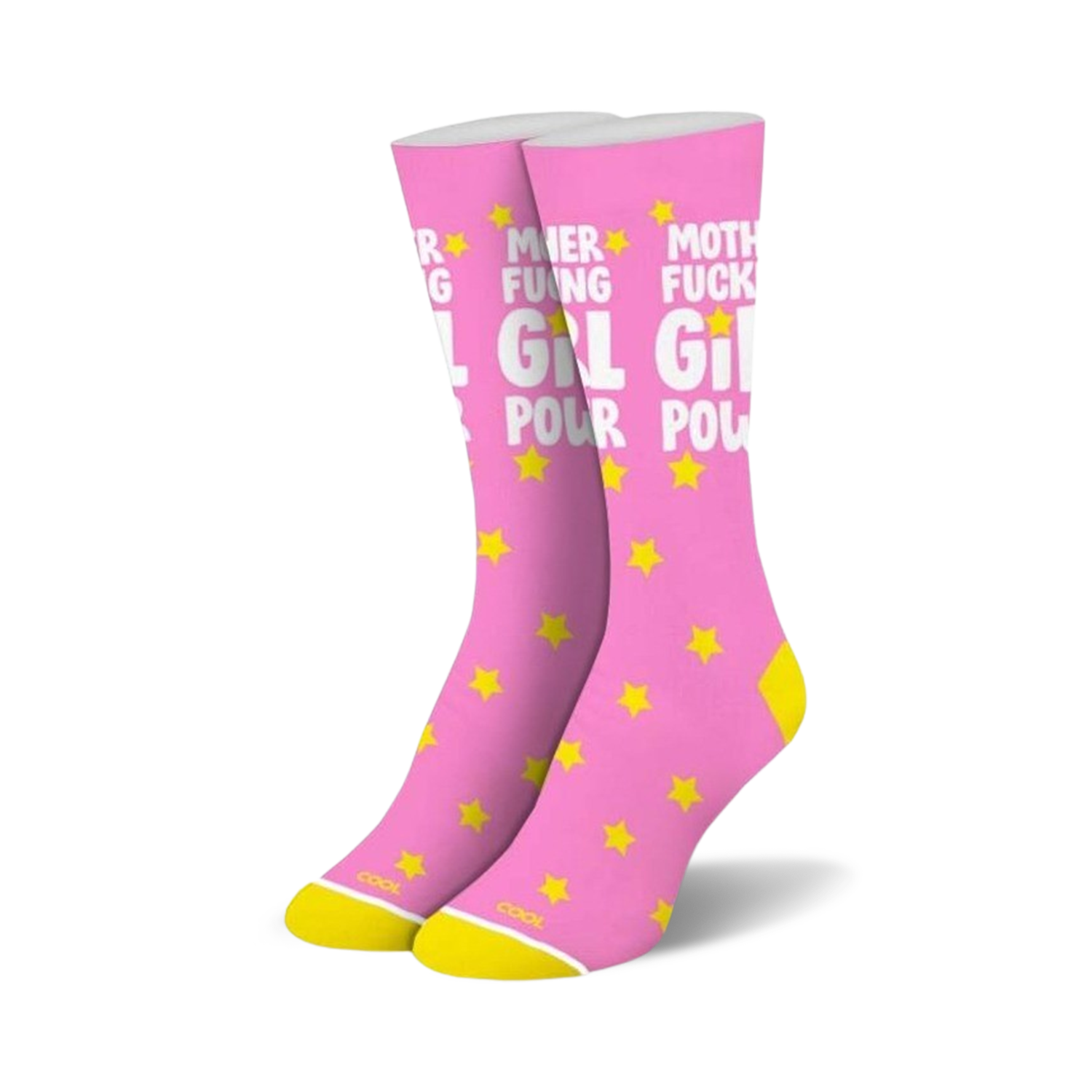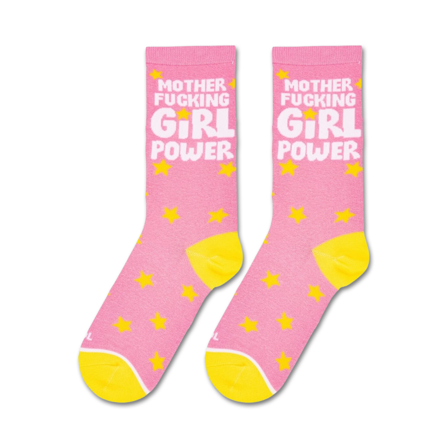Girl power! These bright pink crew socks shout your message with yellow stars and white lettering: 'Mother Fucking Girl Power.' Wear them to strut your stuff and let everyone know what you're about.