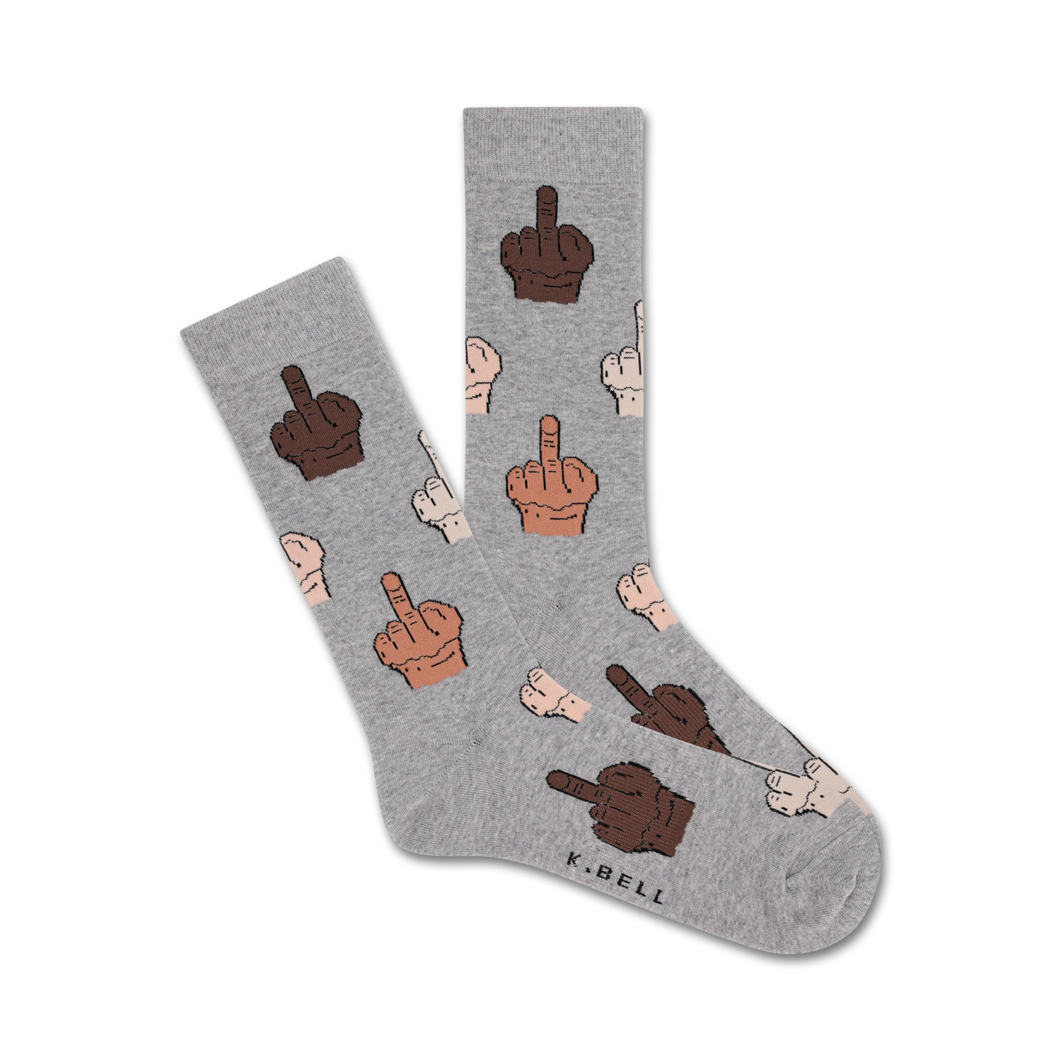 Get Flippin' with our Middle Finger Update Socks! Featuring an array of colorful middle fingers in various shades of brown, these crew-length socks are like a rebellious work of art for your feet. Perfect for those who like to show their sassy side in style!