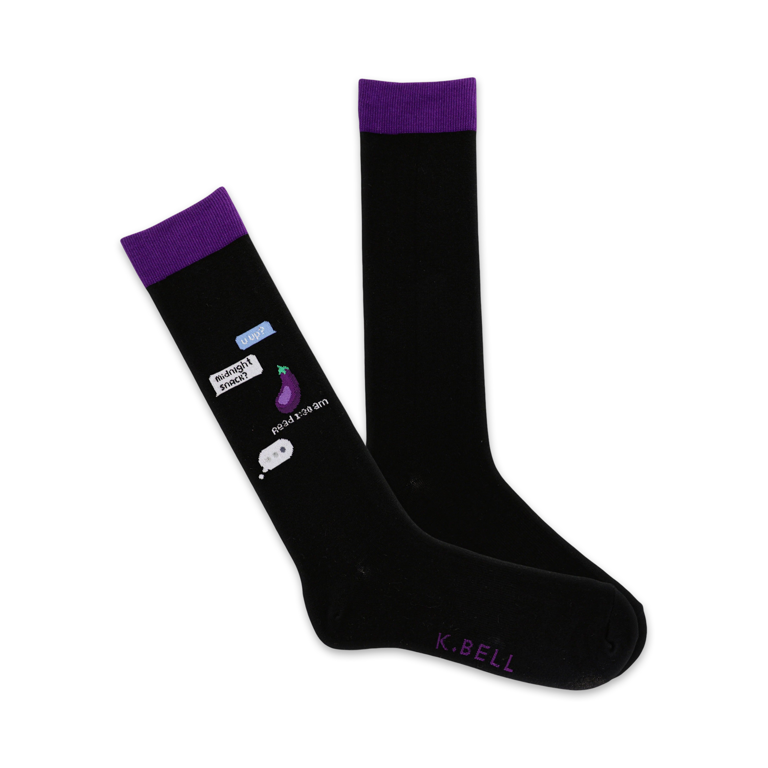 Walk this way to a world of amusement with our Midnight Snack Text socks! These enigmatic socks are a late-night dialogue waiting to happen. From the toes to the heels, this conversation will have you laughing from the sole up. Crafted for the modern-day conversationalist, step into these socks and let your feet do the talking!