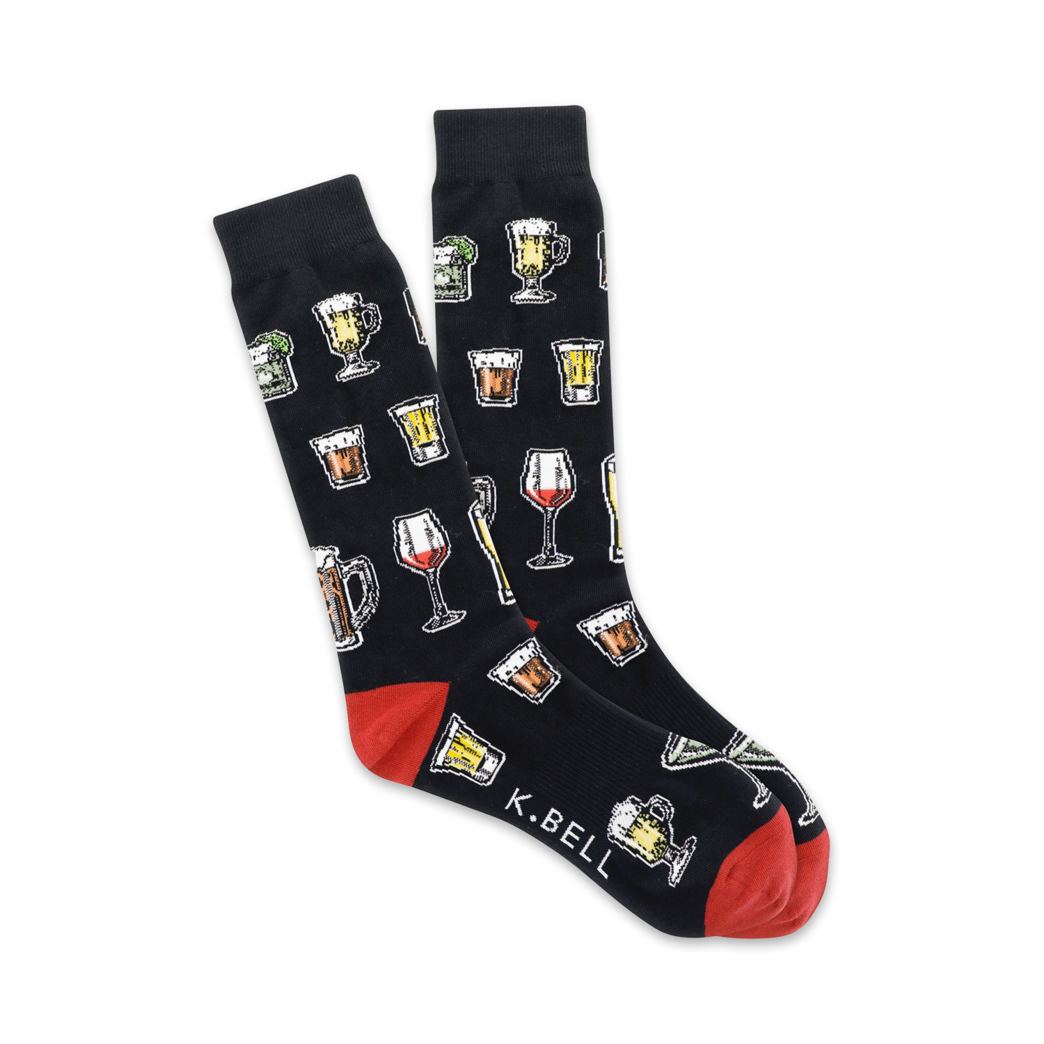 Shake up your style with our Mixed Drink Dreams socks. Featuring a colorful array of cocktails, these socks will have you feeling tipsy without taking a sip. The black color with red toe and heel is the perfect accent for a night out. These crew-length socks are perfect for men who want to add some fun to their wardrobe.