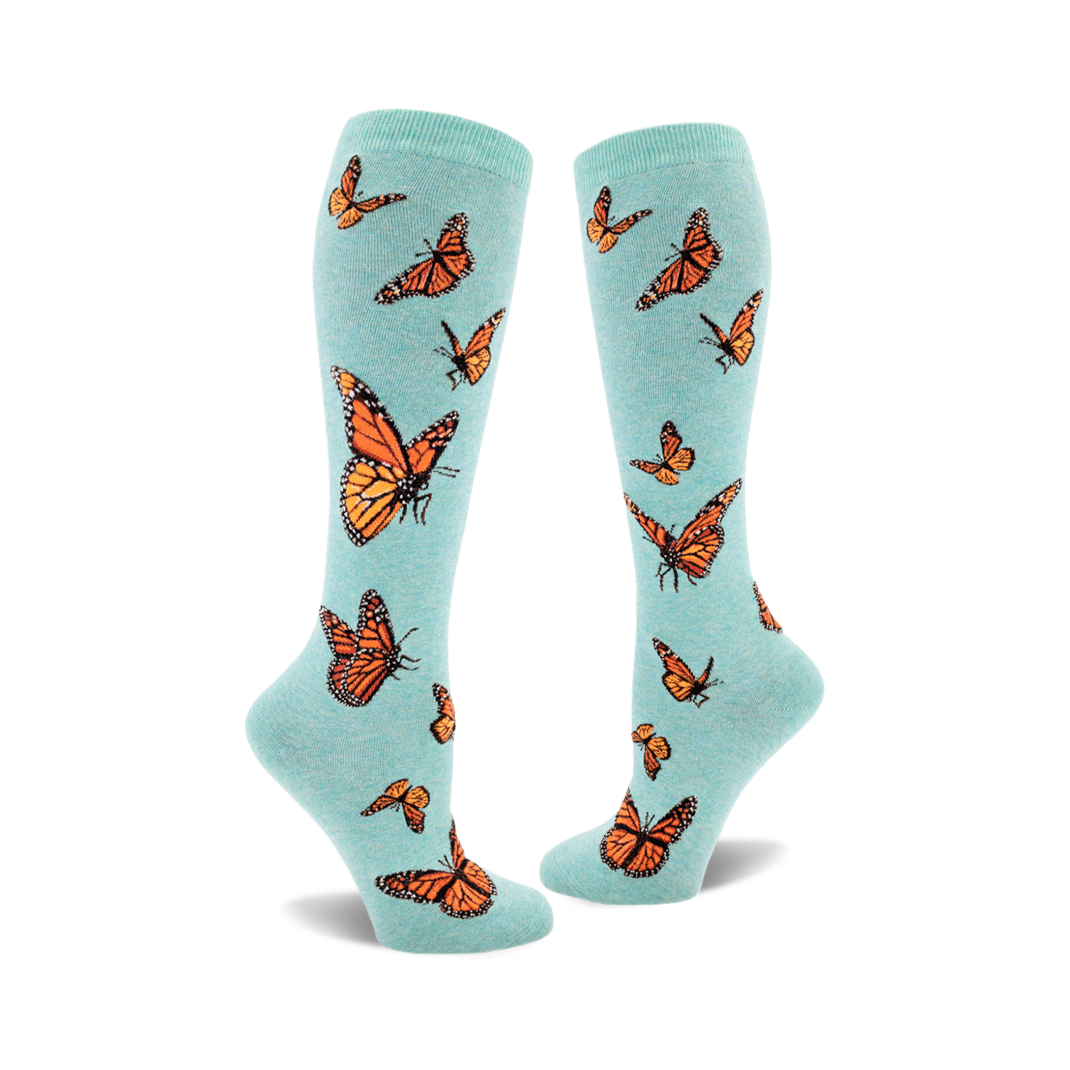 Flit, flutter, and flaunt these delightful Monarch Butterfly knee-high socks! Wrapped in a swarm of vibrant dark orange butterflies darting across a sky-blue backdrop, these socks are a perfect blend of whimsy and charm. Whether you're a nature lover looking for a wardrobe flourish or seeking the ideal accessory for a garden party, these socks are your ticket to compliments. Perfect for brightening up mundane office attire or adding a playful twist to your weekend getup. Why blend in when you were born to stand out with these eye-catching beauties?