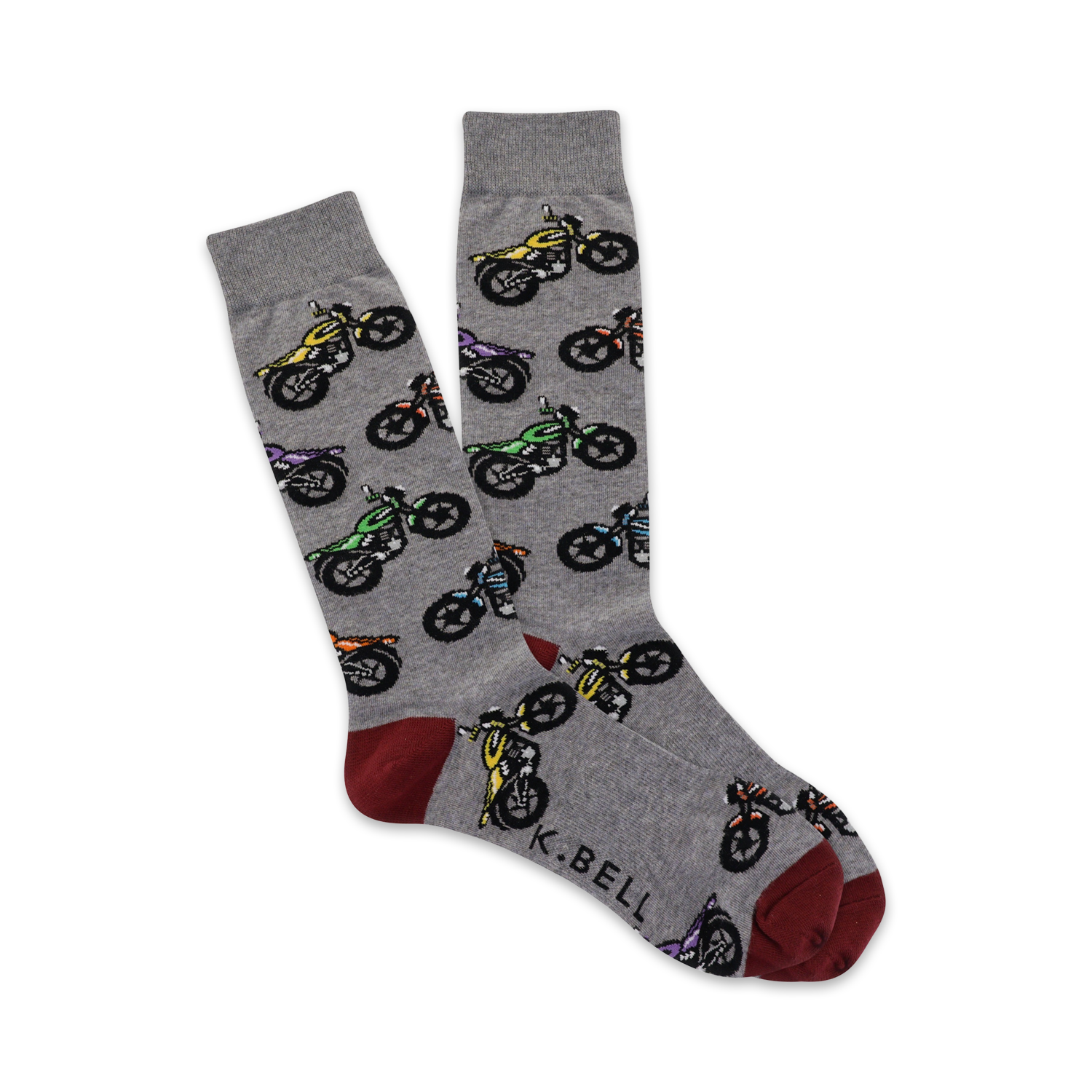 Ride your socks off with Moto crew socks! With a pattern of colorful pixelated motorcycles, these socks will take your feet on a wild adventure, one wheel at a time. Guaranteed to turn heads and put a smile on your face, Moto socks are the perfect way to add a touch of fun to your everyday look. You'll be rolling in style, no matter where you go!