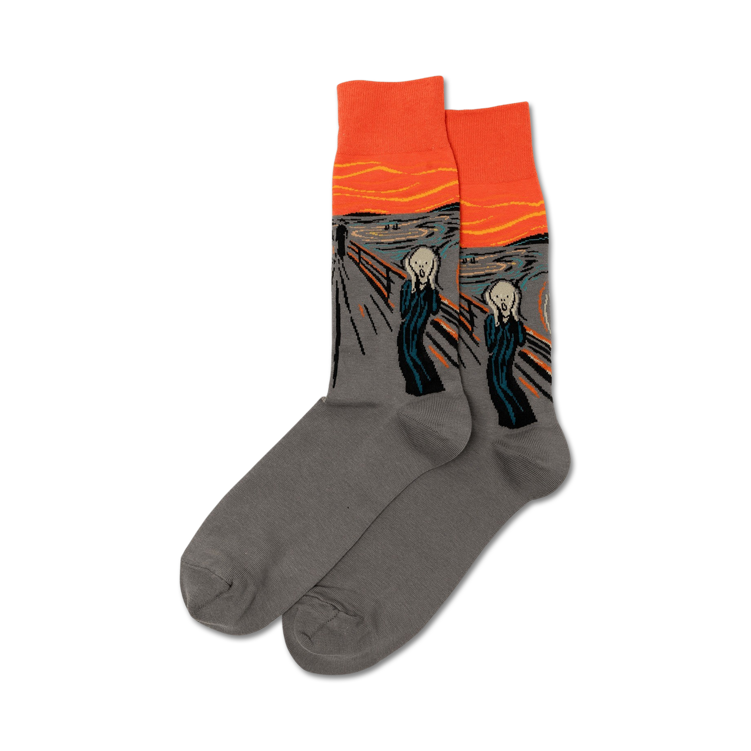 Unleash your inner art enthusiast with Munch's The Scream socks! These crew socks feature Edvard Munch's iconic painting, showcasing a person screaming in agony against a vibrant orange and yellow backdrop. Don't be afraid to show off your artistic side and let your feet do the talking. Inspired by the resilience of axolotls, these socks are an artistic reminder of the strength within even the most unexpected places.