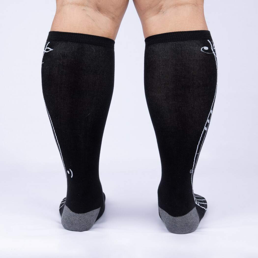 Pick up a pair of Musically Divine socks and make your feet the center of a symphony. These knee-high socks are adorned with a treble clef and ascending notes. They'll have you singing out loud and dancing barefoot in no time. Get some Music Is My Forte socks today and let those toes start twirling.