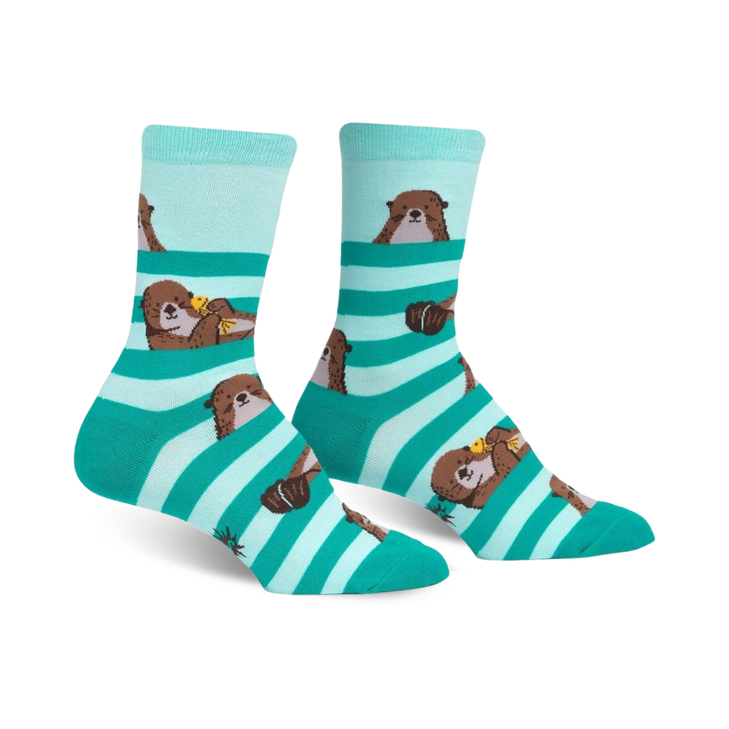 Otter-ly, otter-ly adorable! These socks are swimming with cartoon sea otters in a blue-green lagoon. They're soft, colorful, and perfect for anyone who loves these cute creatures! Also, did you know otters can hold their breath for up to 8 minutes? That's impressive!