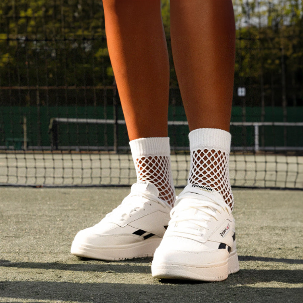 Look at those Net Quarter Socks! In the mood for fashion? Then you need to slip into these socks. The light blue base adorned with a white pattern of net quarters will ensure you're looking your best. And you probably already know that women's crew socks are the comfiest socks. These are no exception. So slip into a stylish pair of Net Quarters and prepare to take on the world, one fashionable step at a time!