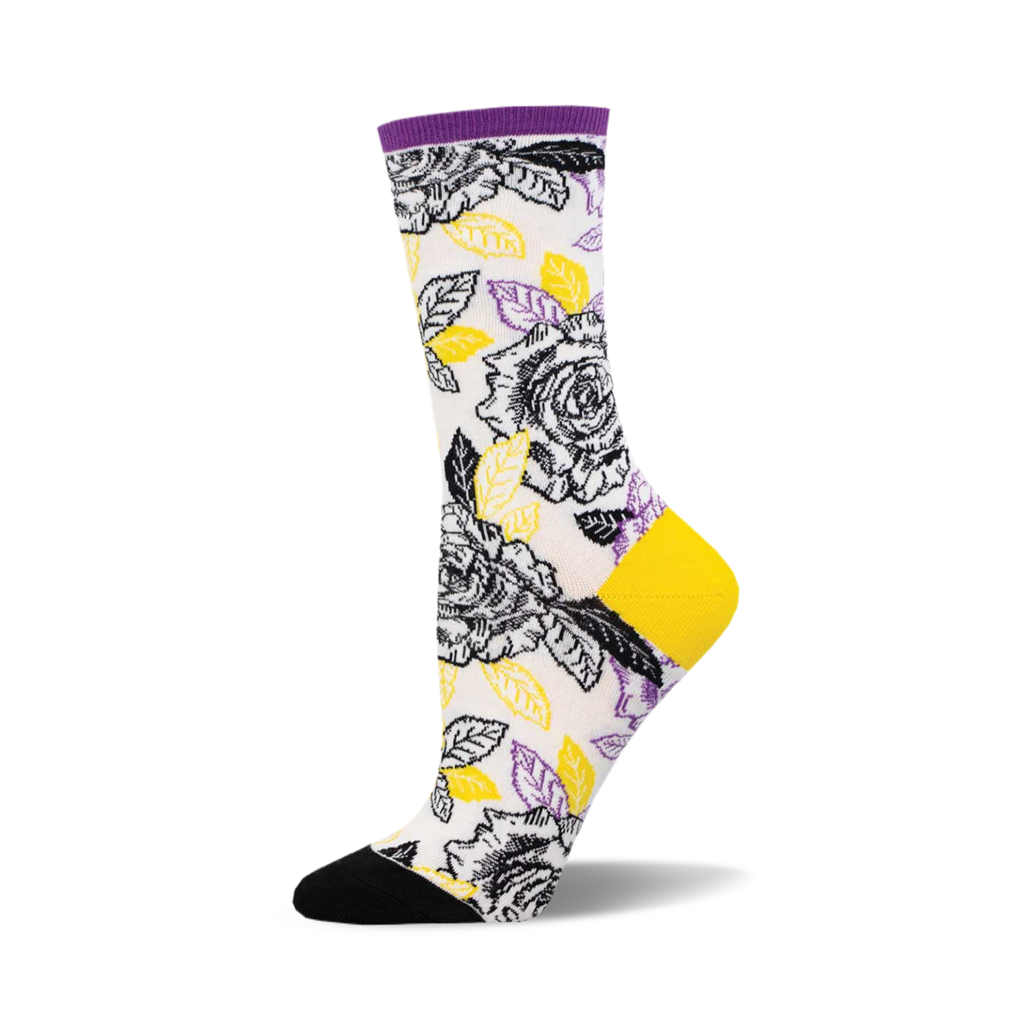 Flaunt your feet with our show-stopping Nonbinary Roses socks! Picture this: a playful tumble of black and yellow roses intertwined with lush green leaves, all perfectly made to pop against a crisp white backdrop. The black toes and heels add a dash of mystery, while the purple tops wrap up the look with a royal finish. Whether you're lounging at home, spicing up your office attire, or stepping out for a fancy soirée, these socks are your go-to for adding a touch of whimsy and a splash of color. So, why settle for ordinary when you can bloom in style at your next event with our enchanting floral crew socks? Go ahead, let your socks do the talking!