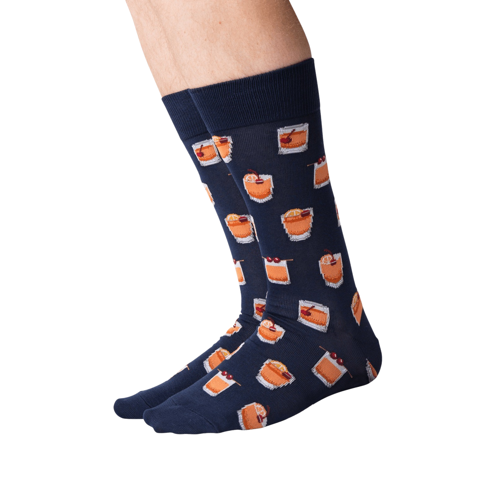 Raise a glass (or a toe, rather) to the Old Fashioned Crew Socks a tip of the cap to the classic cocktail with an all-over pattern of vintage whiskey glasses brimming with citrus and cherries. These aren't your run-of-the-mill socks, they're a shot of style and a twist of fun for any man's wardrobe. Cheers to that!