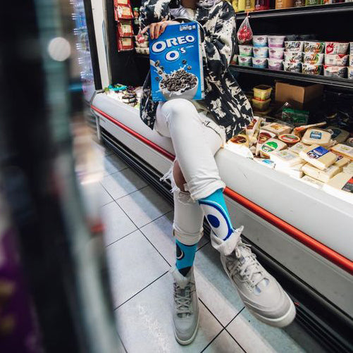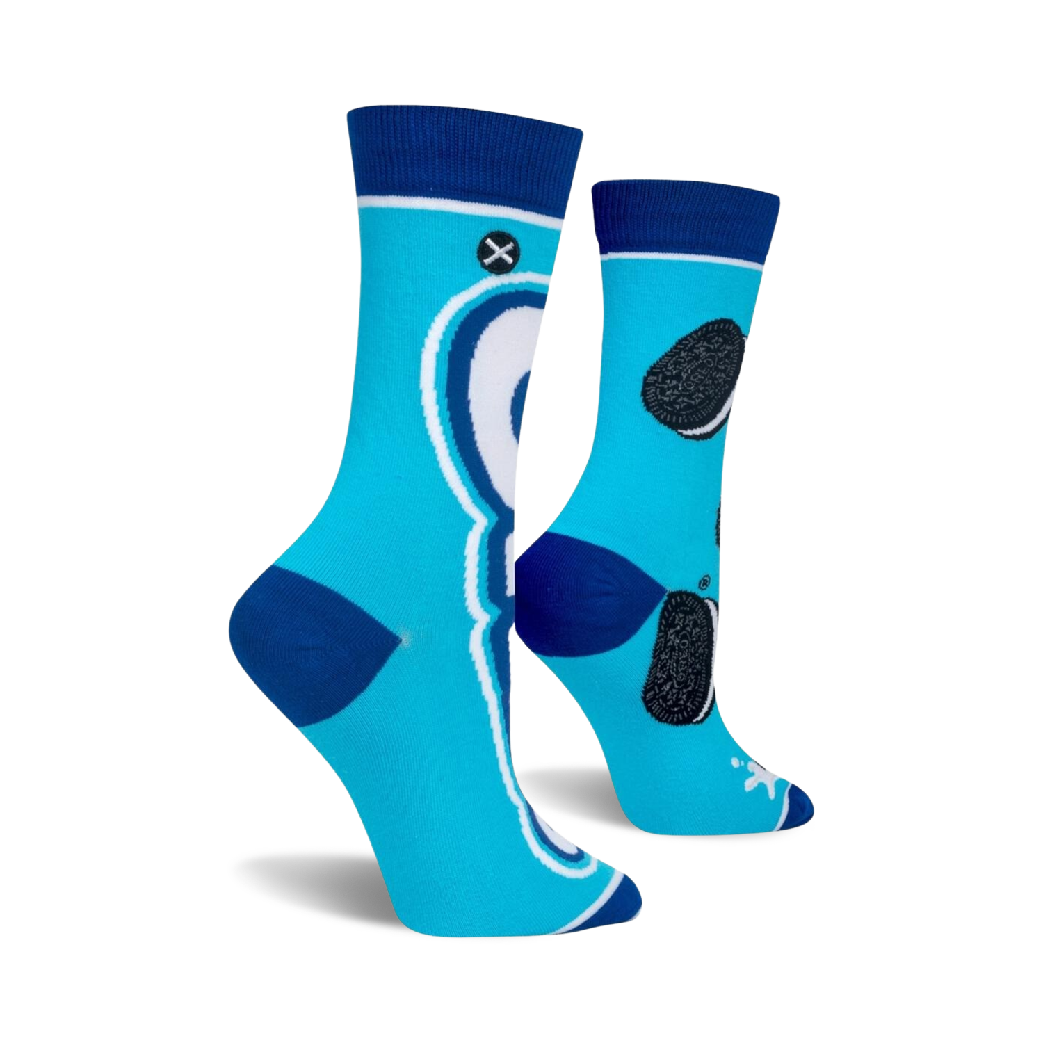 Oreo Cookies - Blue Crew Socks for Women Treat your feet to a sweet treat with our Oreo Cookies Socks. These blue crew socks feature an all-over print of everyone's favorite cookie, the Oreo. They're so delicious-looking, you'll want to take a bite!