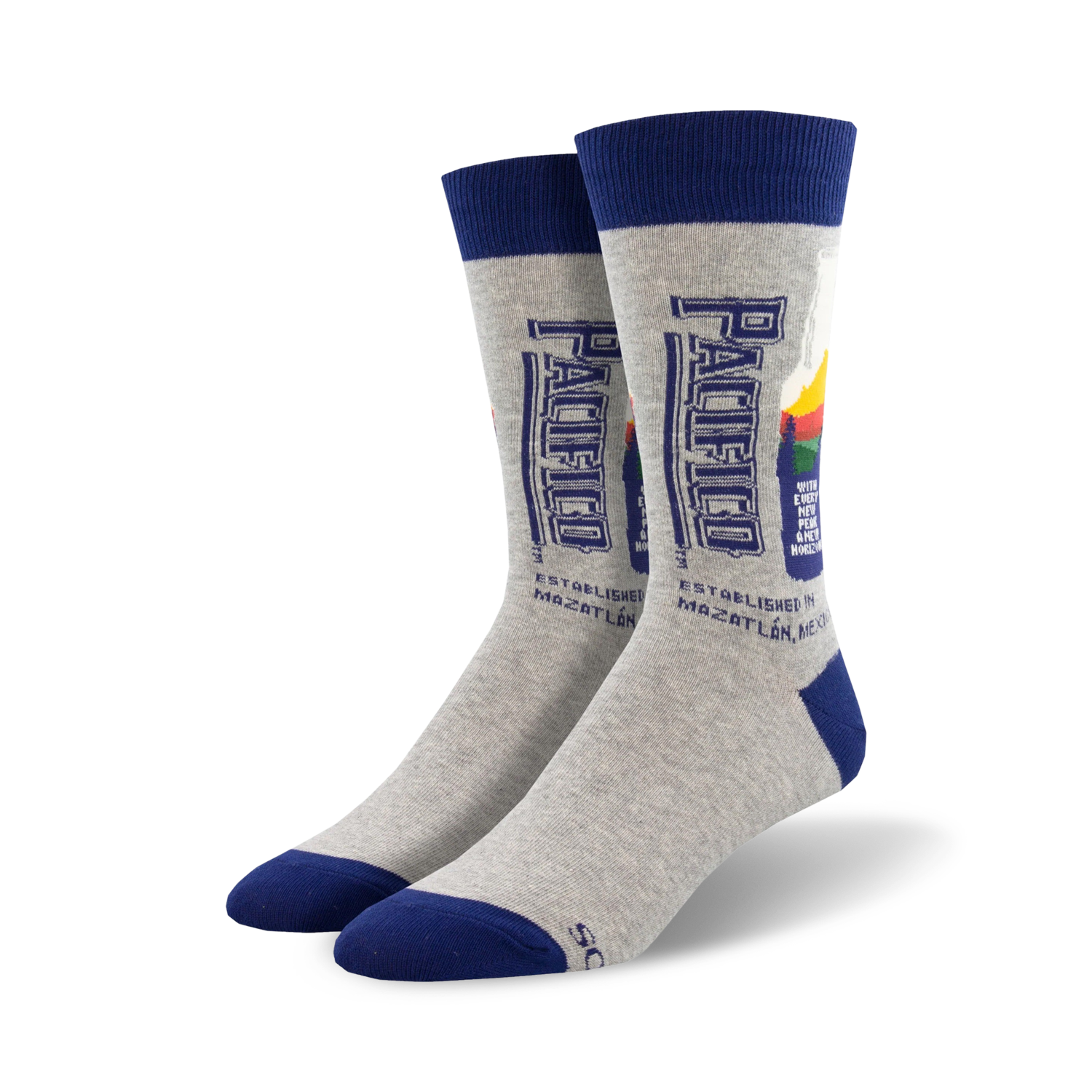 Getting thirsty? Slip into Pacifico Bottle Socks and sip on the sweet taste of relaxation. With their beachy blue skies, swaying palm trees, and chill sunset vibes, these socks will transport you to the beach and help you forget your troubles. And if that wasn't enough, These Pacifico Bottle Socks have a surprise for you: a blue band at the top and toe. These socks will make you feel so relaxed, you'll be saying "Pacifico!" instead of "Aloha!"
