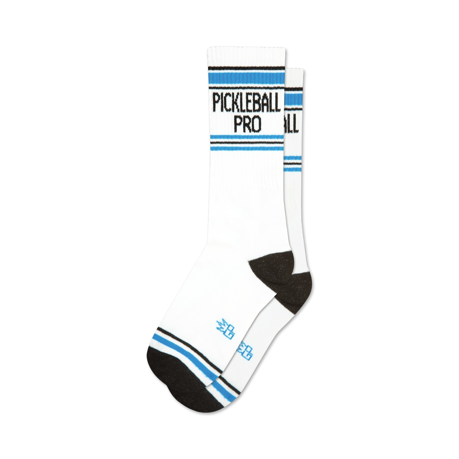 Pickleball Pro Socks: Serving Up Style and Comfort Add some fun and flair to your pickleball game with these Pickleball Pro socks. Their eye-catching blue and black design featuring the words "Pickleball Pro" makes them a must-have for any fan of the sport. Show off your pickleball passion on and off the court with these comfy crew socks that are perfect for both men and women.
