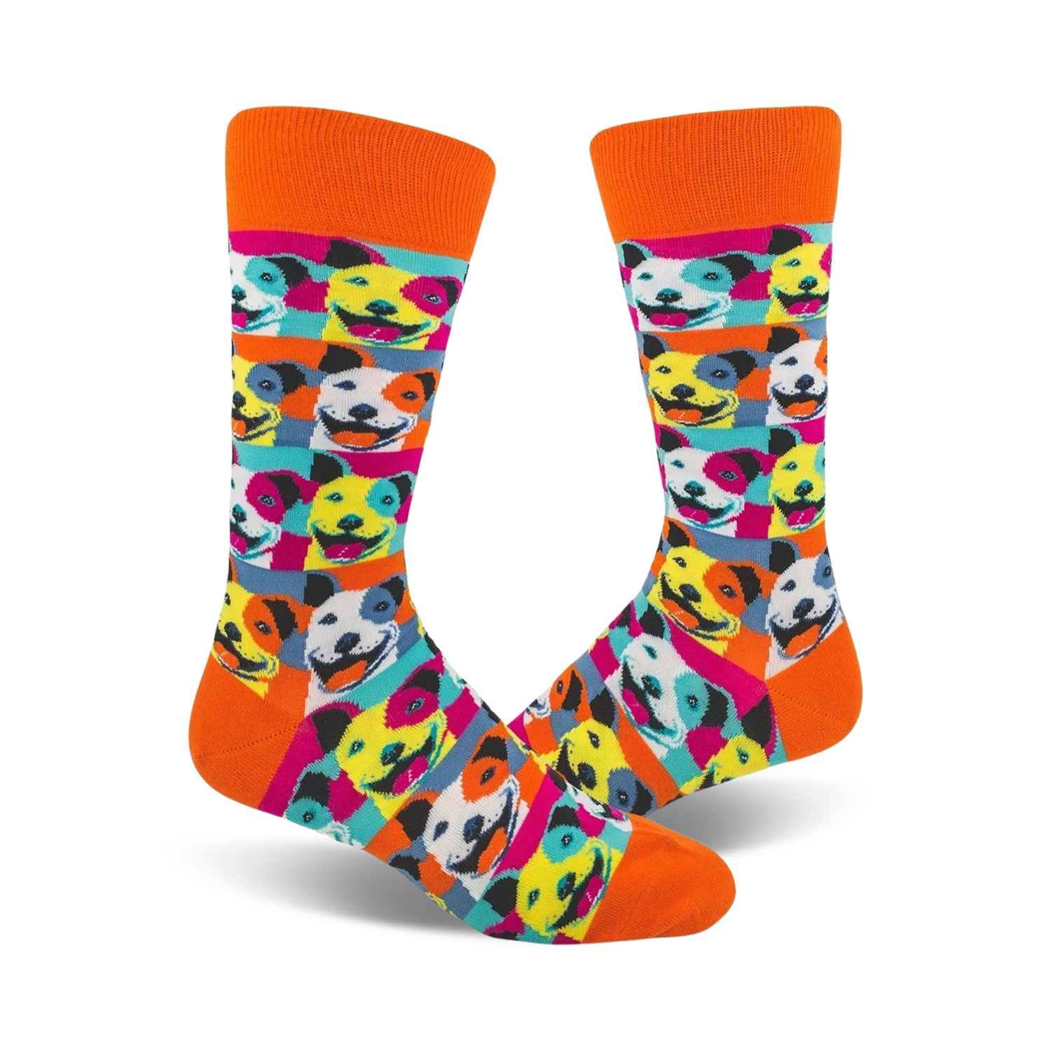 Unleash your inner toughness with our Pitbull Pop Art Crew Socks! These dazzling socks showcase an array of vibrant Pitbull faces in a bold Pop Art style. Let your feet strut with confidence, knowing you're rocking the spirit of a tenacious canine. Put on a pair and feel the power of the Pitbull pack!