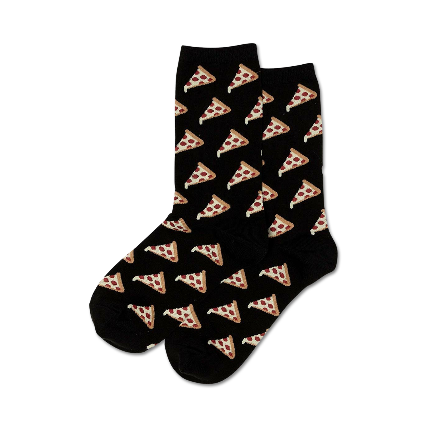 Pizza, pizza, me want pizza! These awesome socks will make you crave your favorite cheesy, gooey slice with their super fun pattern of pizza slices in bright red, orange, and yellow. They say you can't eat socks, but no one said you couldn't wear pizza! Spice up your outfit with these fun women's crew socks and wear a slice of pizza on your feet.