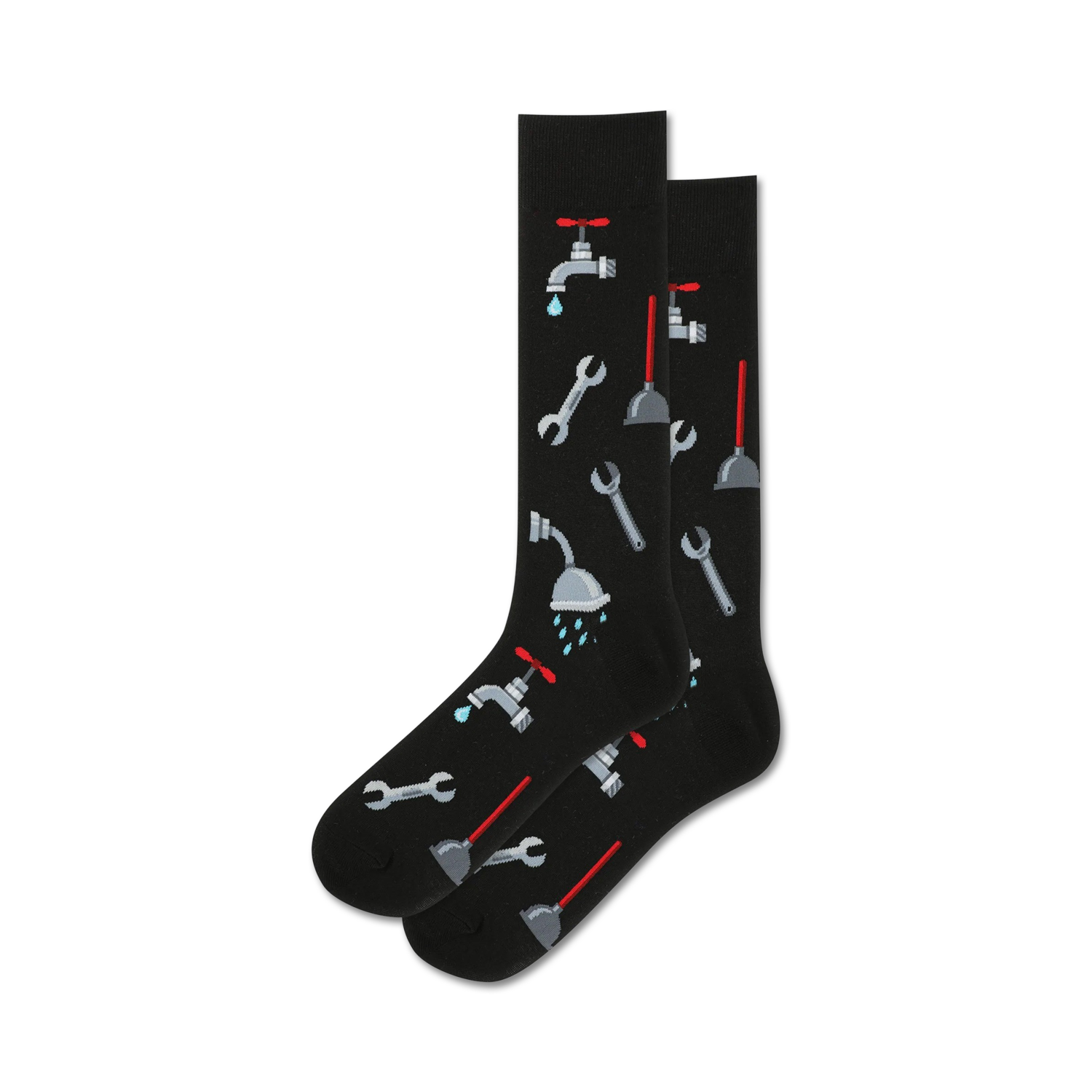 Ready to add a splash of fun to your sock drawer? Look no further than our "Plumber" Crew Socks for Men! Picture this: A captivating design featuring red and blue tools and plumbing fixtures on jet-black socks. It's like having your own plumbing toolbox right on your feet! Be the talk of the town, or at least the break room, with these whimsical and eye-catching socks. Whether you're fixing a leaky faucet or just showing off your playful side, our Plumber Crew Socks are the perfect choice. So, grab a pair and let the good times (and water) flow!