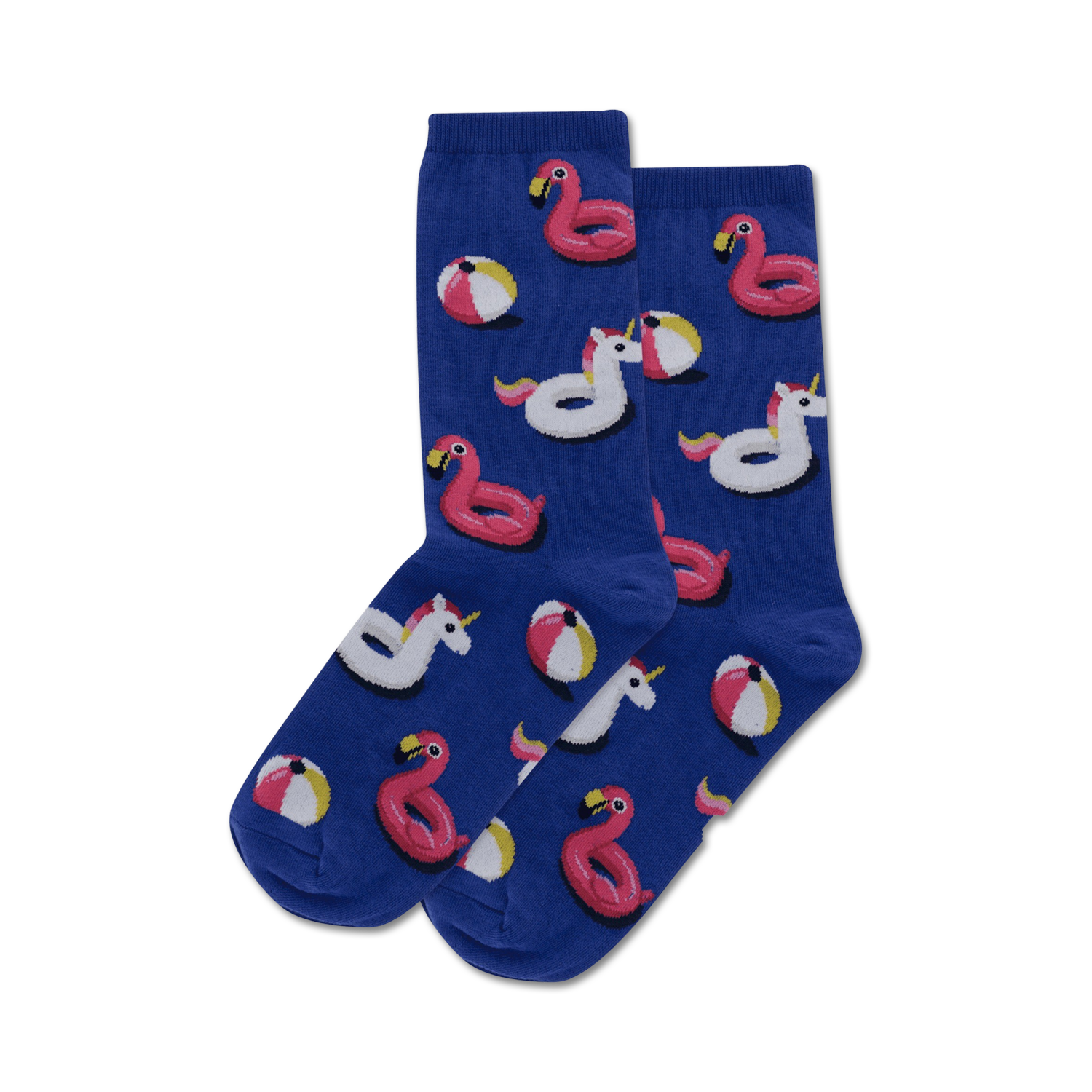 Pool Floats Socks: The Coolest Summer Accessory Take a splash into summer with our Pool Floats socks! Float away to sock heaven with these fun crew socks featuring flamingos, unicorns, and beach balls. Just like you, these socks are perfect for a pool party or just kicking back and relaxing. So slip on a pair, grab your sunglasses, and dive into a day of fun!