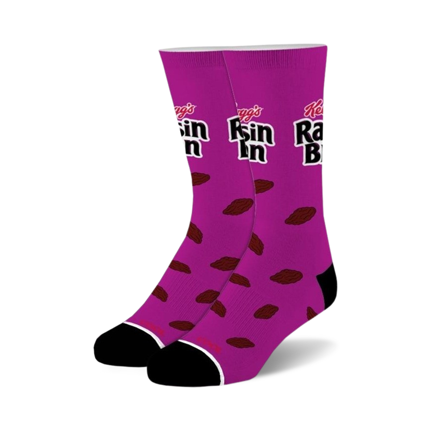 Behold the pinnacle of breakfast-inspired foot attire: the Raisin Bran Crew Socks! With their irresistible purple backdrop, these socks showcase an eye-catching pattern of plump, juicy raisins, ready to add a dash of sweetness to your steps. The black toe and heel add a touch of sophistication, like a tuxedo for your feet. Whether you're raisin' the roof at a dance party or bran-storming new ideas at work, these socks will keep your feet feeling fine. So, slip into a pair of Raisin Bran Crew Socks today and let the fruity fun begin!