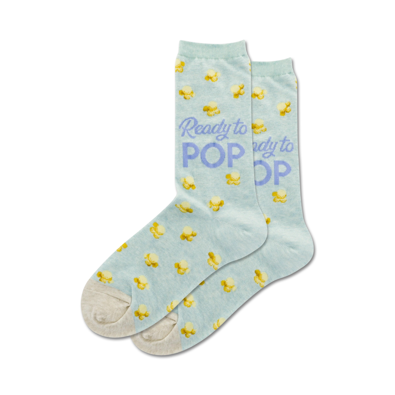 These "Ready to POP" socks are bursting with fun! Show off your popcorn pride with these bold pink women's crew socks. Corn-y jokes optional.