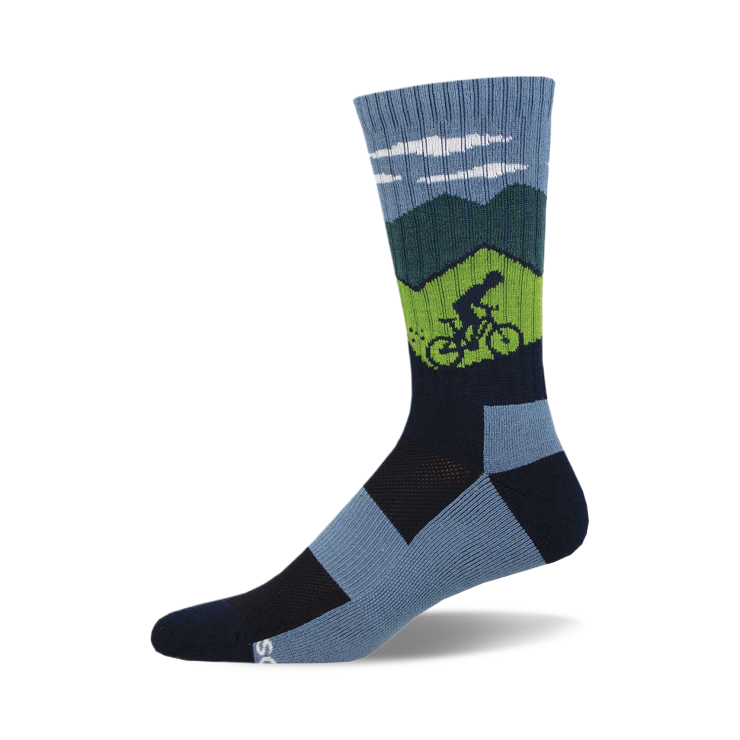 Saddle up your feet in style with our "Ride On, Ride On, Ride On" socks! Picture this: bold blue hues with sharp navy and green accents creating majestic mountains right on your ankles. Imagine a lone cyclist, dauntlessly climbing up your left sock. Perfect for bike enthusiasts, outdoor adventurers, or anyone looking to pedal their way through a fun sock drawer update! Gearing up for a bike ride? Maybe planning a day out in nature? Don't leave your feet feeling left out - grab a pair of these socks and let's ride high on fashion and comfort!