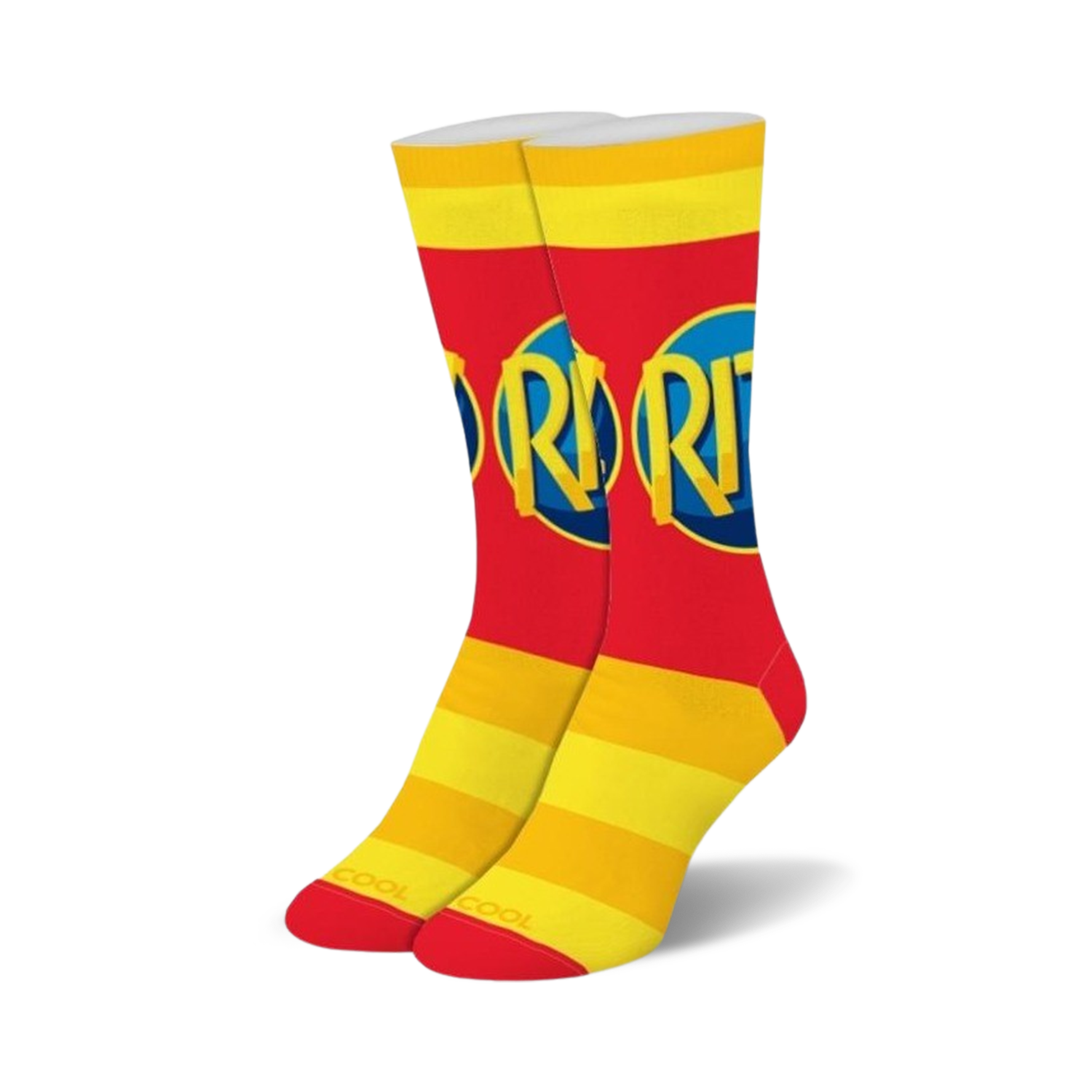 Who says socks can't be fancy? Ritz Logo socks bring a touch of haute couture to your feet with their repeating pattern of the Ritz logo in bright red and yellow. These crew length cotton socks with ribbed cuffs are the perfect accessory for any fashionista looking to add a touch of fun to their wardrobe.