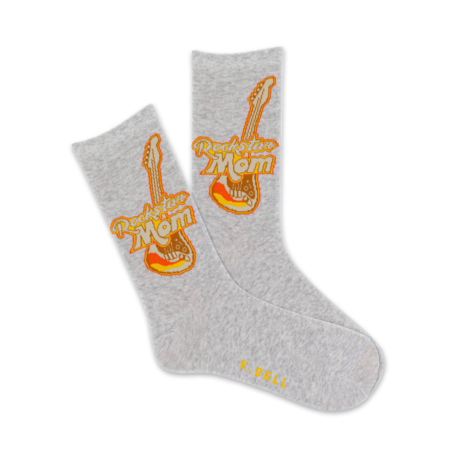 Look who's rocking the sock scene! These gray crew socks shout out to all the Rockstar Moms out there with their bold orange electric guitar and "{Rockstar Mom}" lettering. Perfect for those days when you need a reminder of your fierce side, these socks are a fun and energetic way to show the world that you're a force to be reckoned with.