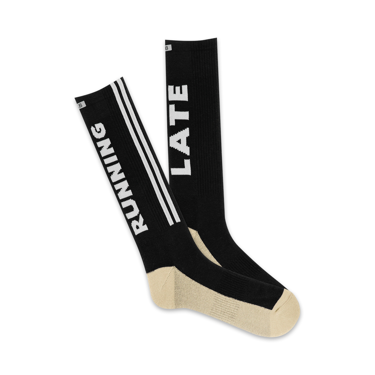 Sneakerheads and fitness junkies, step aside because the Running Late socks are here to steal the show. These socks combine comfort and fun with their soft quality cotton fabric and eye catching design that'll make you the center of attention at your next workout session or errand run. Wherever you go, these socks will let everyone know you're running late, but your sock game is on point!