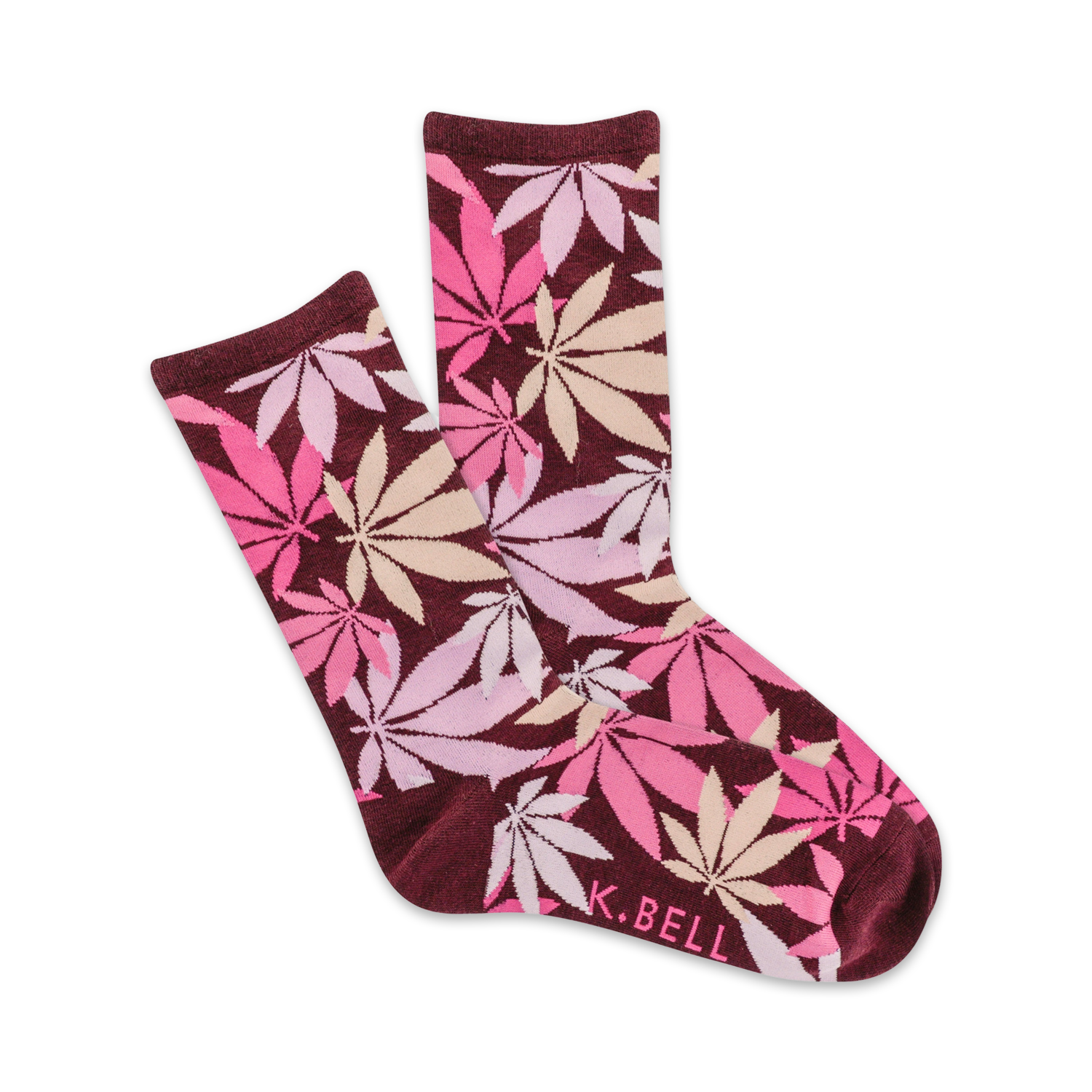 ROFL! Put a little ganja in your swag! These Scattered Cannabis socks in blazing women's crew length will make your feet look lit! Featuring a dark red backdrop adorned with bright pink cannabis leaves, these socks are perfect for toking fashionistas, Dank memesters, and everyday stoners alike. So light one up, put on your new socks, and elevate your style to a higher plane.