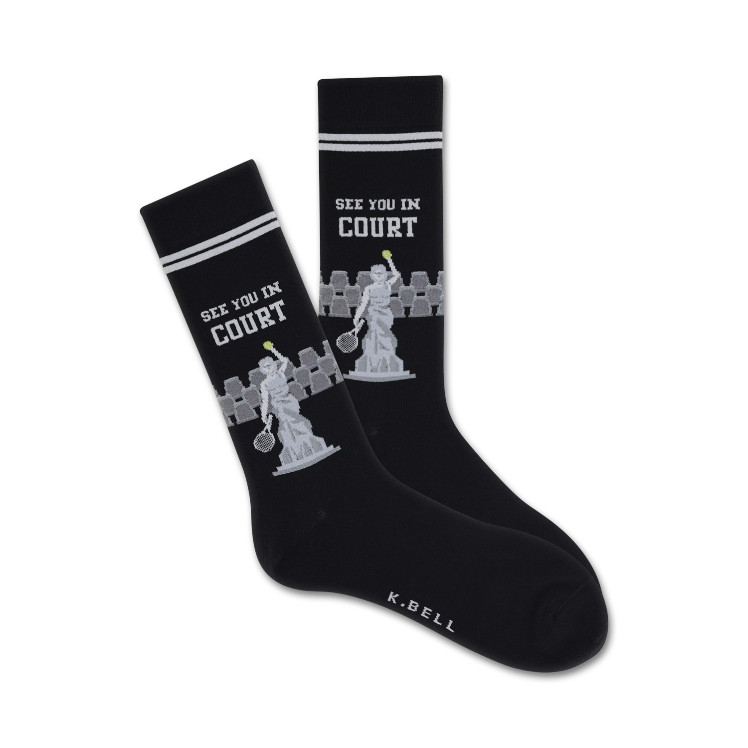 Step up your sock game and serve some serious style in our exclusive "See You In Court" socks. Featuring a legendary tennis player portrayed as a Greek statue, these socks will have you acing your fashion game and dropping jaws wherever you go. The iconic "See You In Court" slogan adds a touch of humor, making these socks the perfect choice for any lawyer looking to add some fun to their professional attire. Elevate your sock collection today and let your feet take center court!