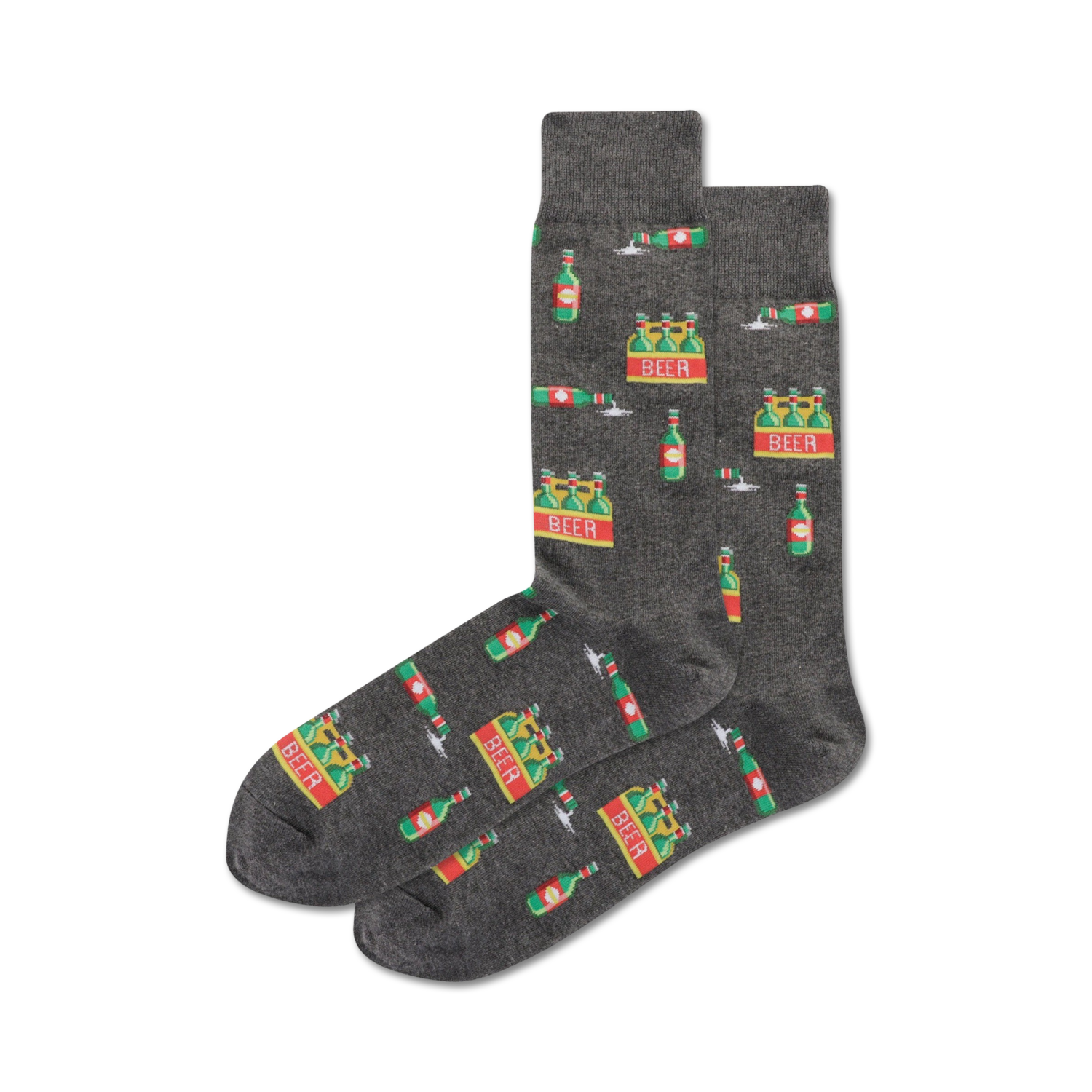 Pour yourself a tall frothy one, put your feet up and let these socks carry you away to a place where suds are always flowing. We're not lion. These Six Pack socks with their green beer bottles in six-pack formation are guaranteed to make your sole feel like it's on hoppy-day. So raise a glass, clink your mugs together and celebrate the malty goodness with every step. Cheers to that!