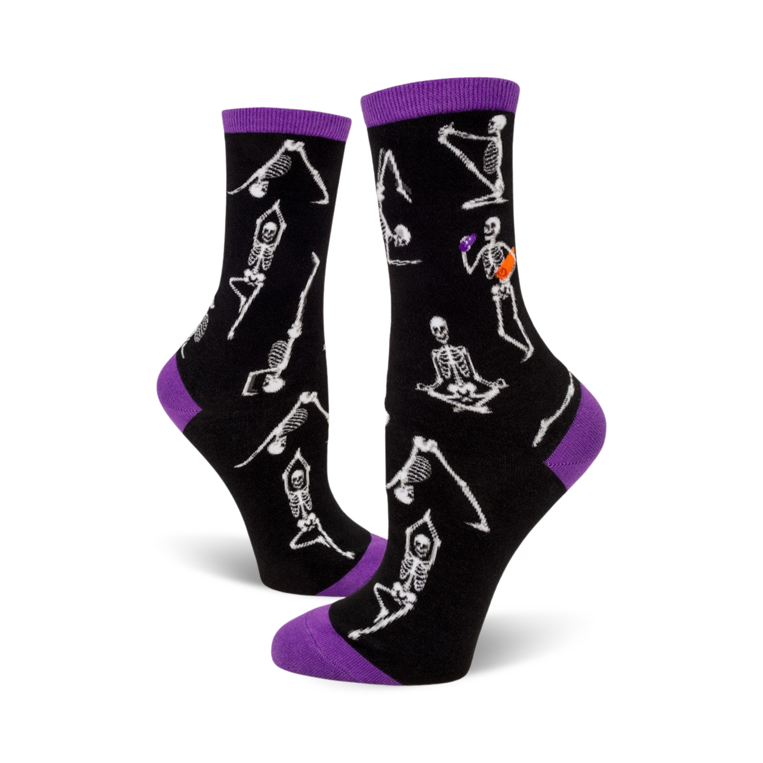 Ever heard of the saying 'dead men tell no tales'? Well, that couldn't be further from the truth if they were wearing these socks! Who needs a yoga instructor when you have a skeleton in a crow pose or downward-facing dog? With these Skeleton Yoga socks, the living dead will be stretching it out and striking a pose instead of haunting your dreams!