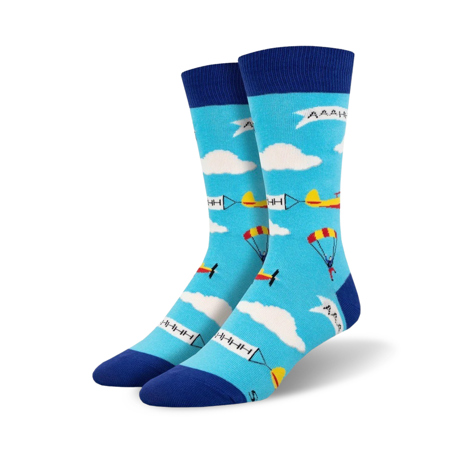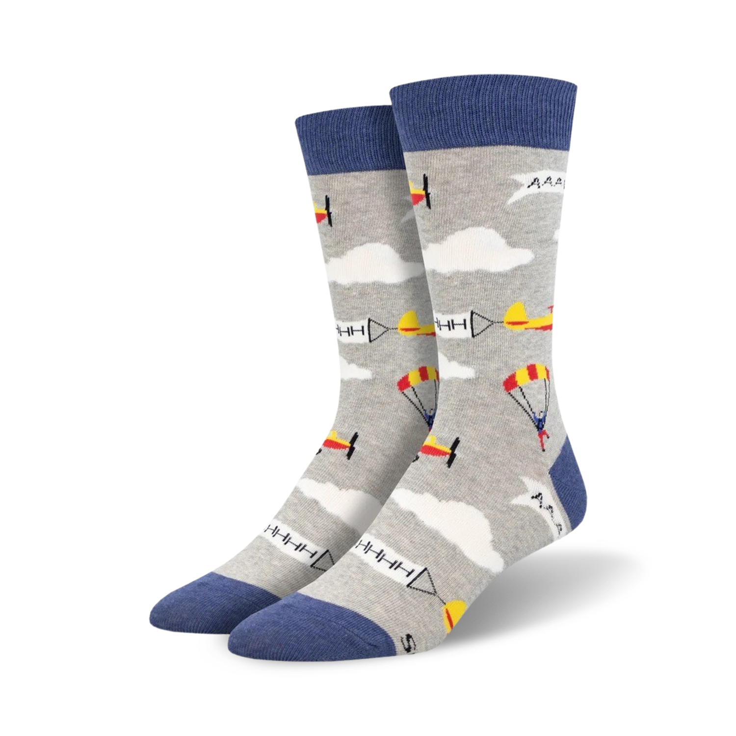 These socks are the perfect way to add an element of fun and creativity to any outfit. With their bold and vibrant patterns of clouds, airplanes, and skydivers, these socks are sure to turn heads and spark conversations. Wear them to show off your playful side or to inspire adventures. And who knows, they might just bring you a bit of good luck on your next adventure!