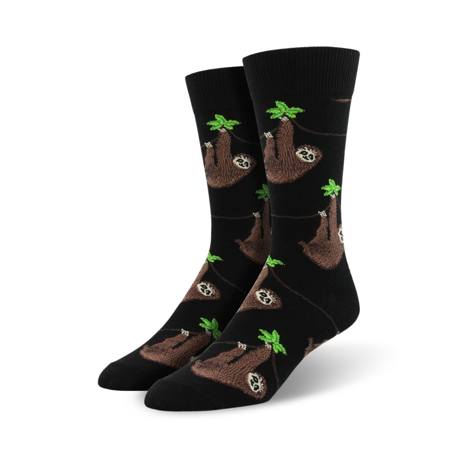 Feeling philoSLOTHical? No? Maybe you could use a nap! These brown socks allude a lazy afternoon featuring slow swinging sloths preparing for a mid-afternoon snooze. Whether your day involves being super productive or taking several necessary naps, you can keep your feet looking stylish and pretty darn cute too!