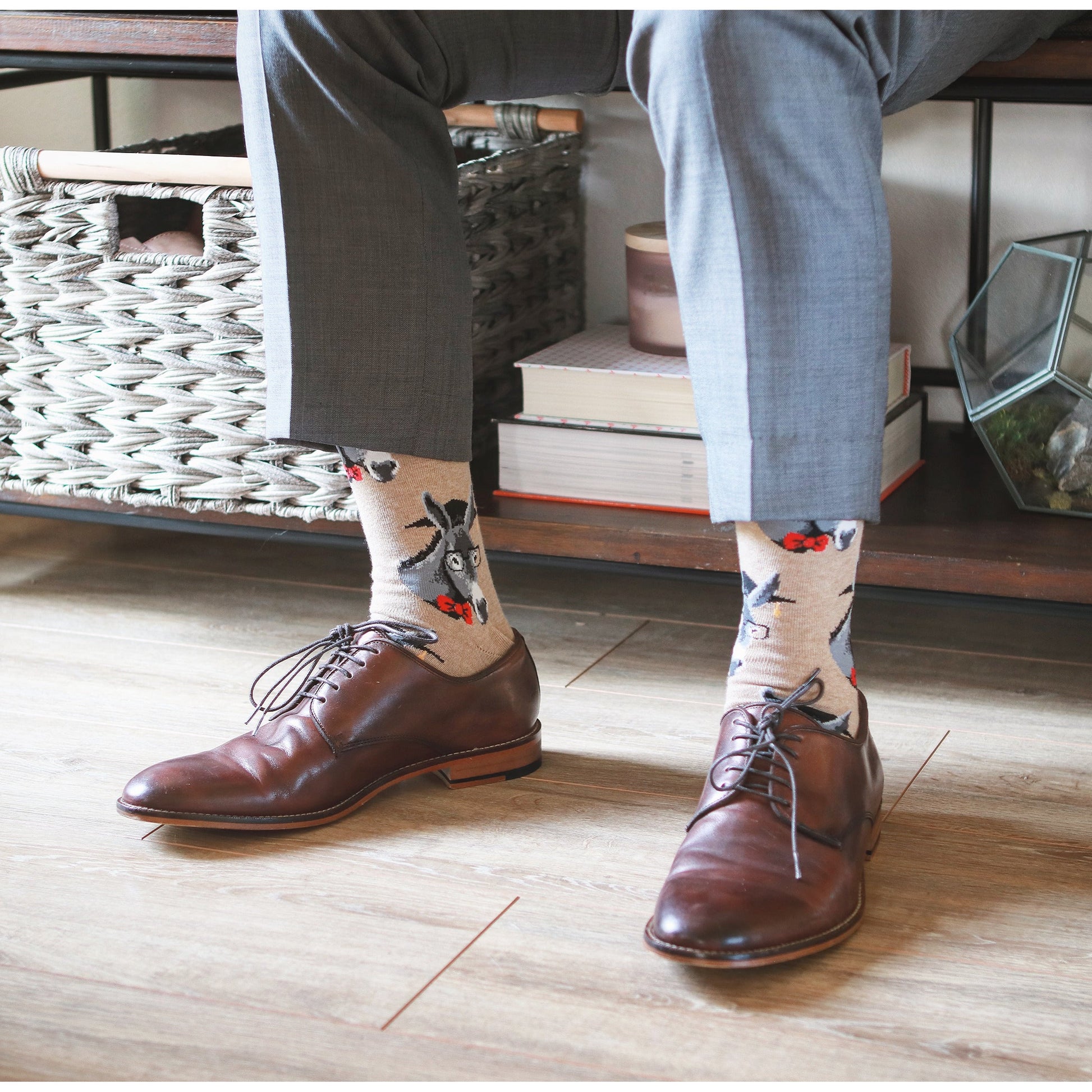 If you're a proud smartass with a love for all things cheeky and playful, then these novelty socks are the perfect addition to your wardrobe. Featuring a pattern of donkeys looking downright intellectual in reading glasses, a red bow tie, and a graduation cap, these socks are a tongue-in-cheek way to show off your sassy side. Whether you're wearing them to a casual outing or to a formal event, these socks are sure to get noticed and make a statement. So go ahead and let your inner smartass shine - these socks are the perfect way to do it. Just be prepared for people to start calling you a "donkey" (in the best way possible, of course).