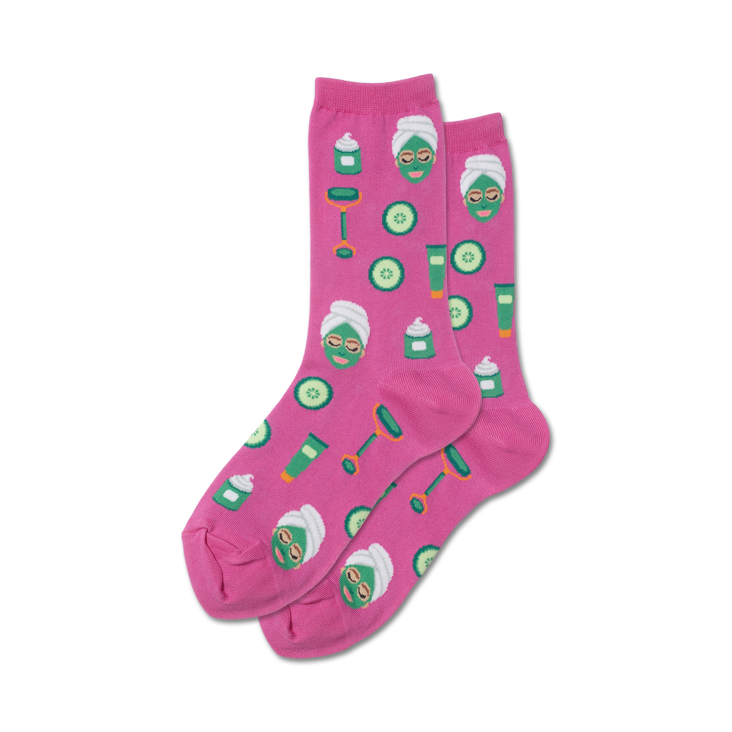 Spa Facial socks: Cucumbers, facial masks, jars of cream, and facial rollers - these socks have the full diva treatment! The perfect pampering experience without leaving the couch. These spa socks make great self-care gifts or Galentine's Day presents. If your bestie had a rough day, help her apply some sock therapy with this beauty-themed set.