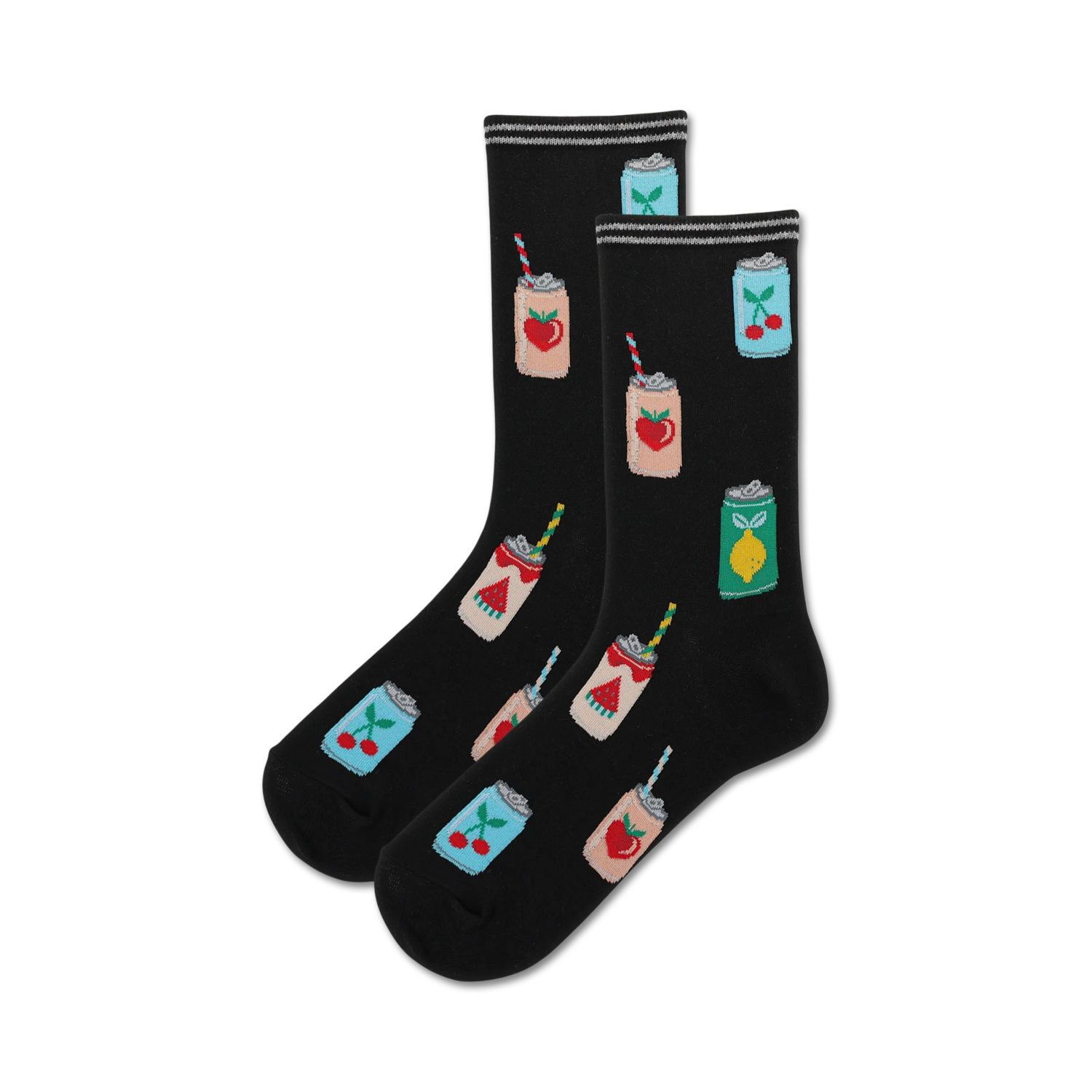 Quench your thirst for style with our Sparkling Water Fruit Seltzer Crew Socks! These socks feature a fizzy, refreshing pattern of your fave sparkling water flavors like cherry, lemon, watermelon, strawberry, and peach. They're comfy, colorful, and will add a pop of personality to any outfit!
