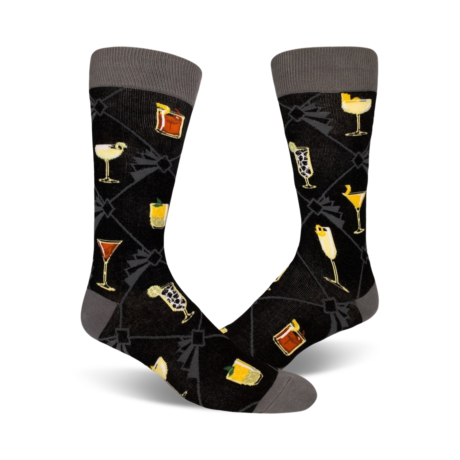 Speakeasy Cocktails socks: Like a sip of your favorite mixed drink, these black crew socks feature cartoon-like cocktails that will get you through the day. Pop on a pair of these classic Speakeasy Cocktails socks and let the good times pour!