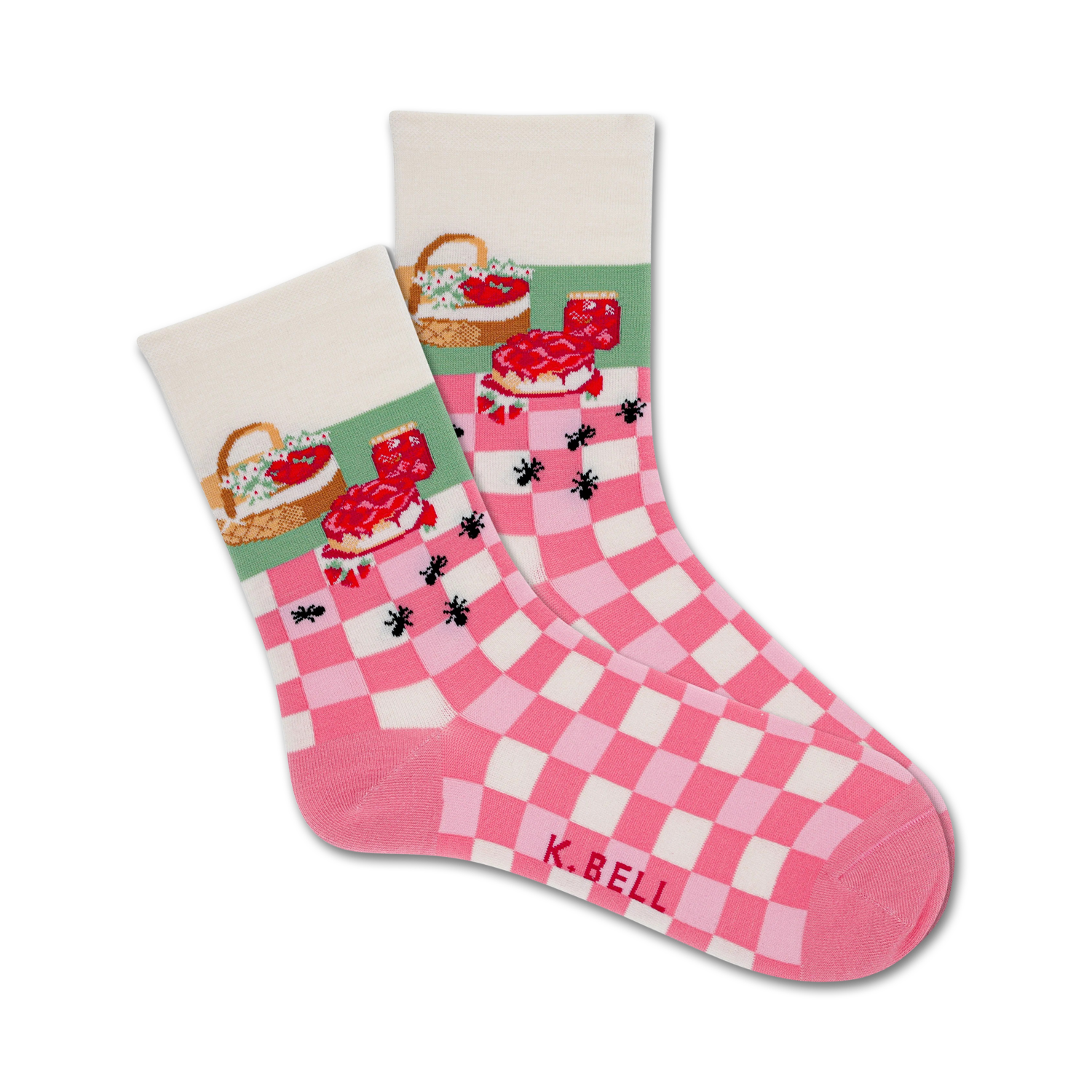 Grab a bite out of these tasty Strawberry Picnic crew socks! Don't worry though, there's plenty for everyone; just don't tell the ants! White at the top and pink and white checkered at the bottom, these sweet and juicy treats are sure to brighten up any day. Plus, you can always count on a good ol' jam jar to help keep those ants in line!