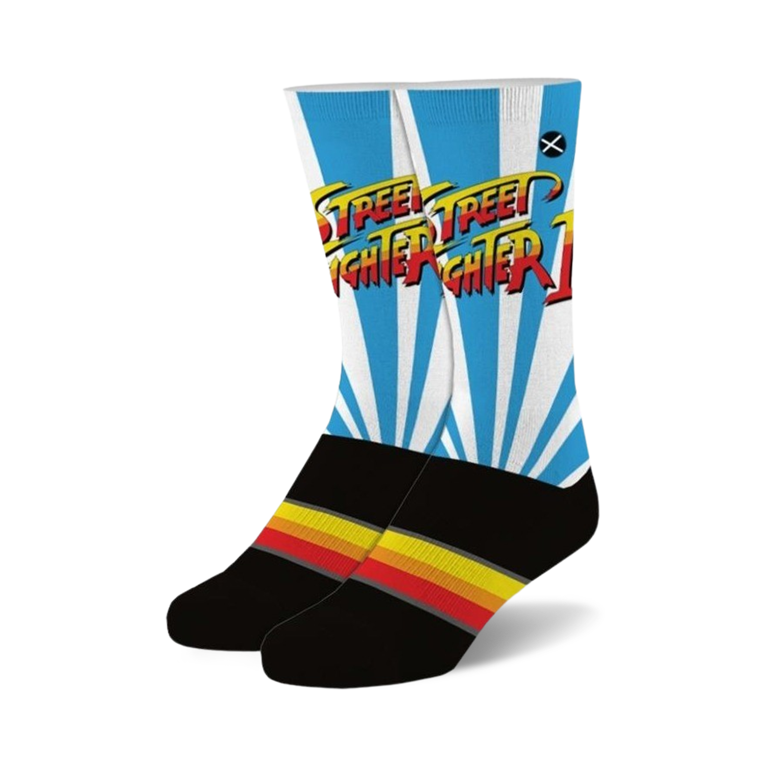 In a world where Ken's legendary blue and black Street Fighter logo can end up on your feet, you're always ready to tussle. Street Fighter 2 logo novelty crew cut cotton poly crew cut athletic sports crew sock. Take on the world or just take on the day like a Street Fighter legend with these vibrant novelty dress athletic comfort crew cut Street Fighter logo comfy crew cut cotton poly crew sock.