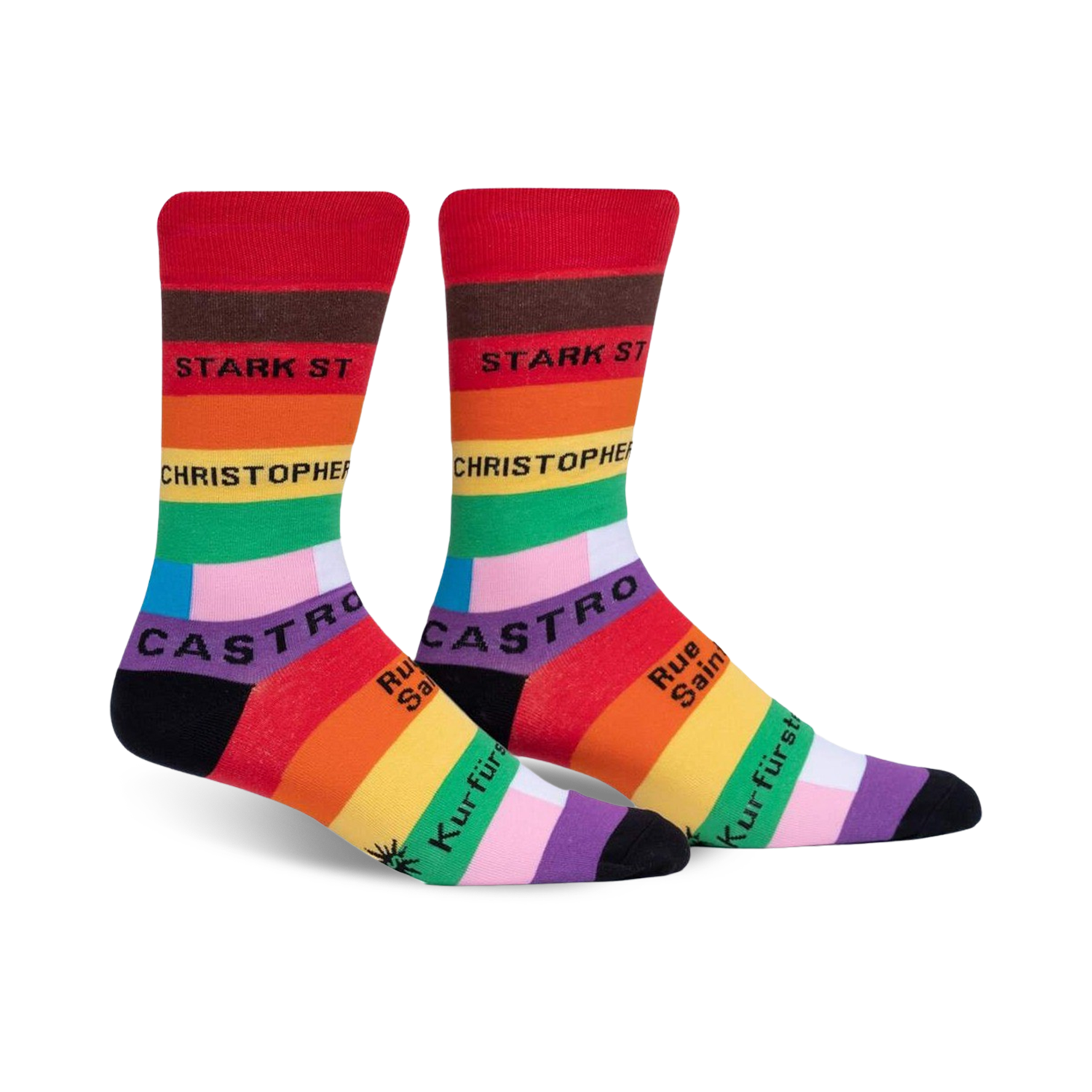 The Streets of Pride socks put a colorful twist on a classic look. With alternating horizontal rainbow stripes, these socks are sure to brighten up your day. Whether you're rocking them to a parade, a festival, or just a casual day out, these socks will help you show your pride in style. Plus, they're so comfy, you'll feel like you're walking on a cloud. Fun fact: Rainbows are a symbol of hope and new beginnings. So next time you need a little pick-me-up, just look down at your feet and smile.