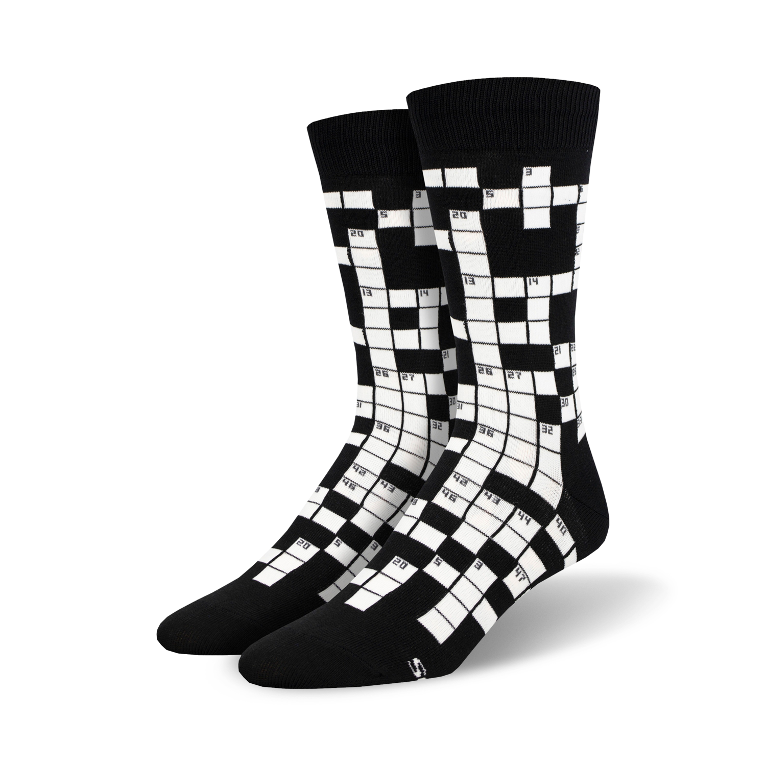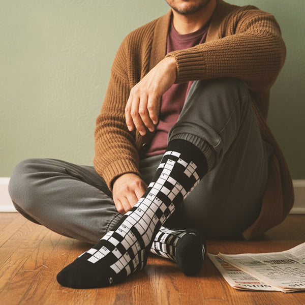 The crossword puzzle is a classic game that tests your wit and vocabulary. Now you can wear your love of crosswords on your feet with these Sunday Crossword Socks. The black socks are decorated with a white crossword puzzle pattern, so you can always have a puzzle to solve, even when you're not at the kitchen table. Plus, with a plush terrycloth sock that cushions your arch and heel, they're the perfect socks to wear while you're sitting down to solve the daily puzzle.