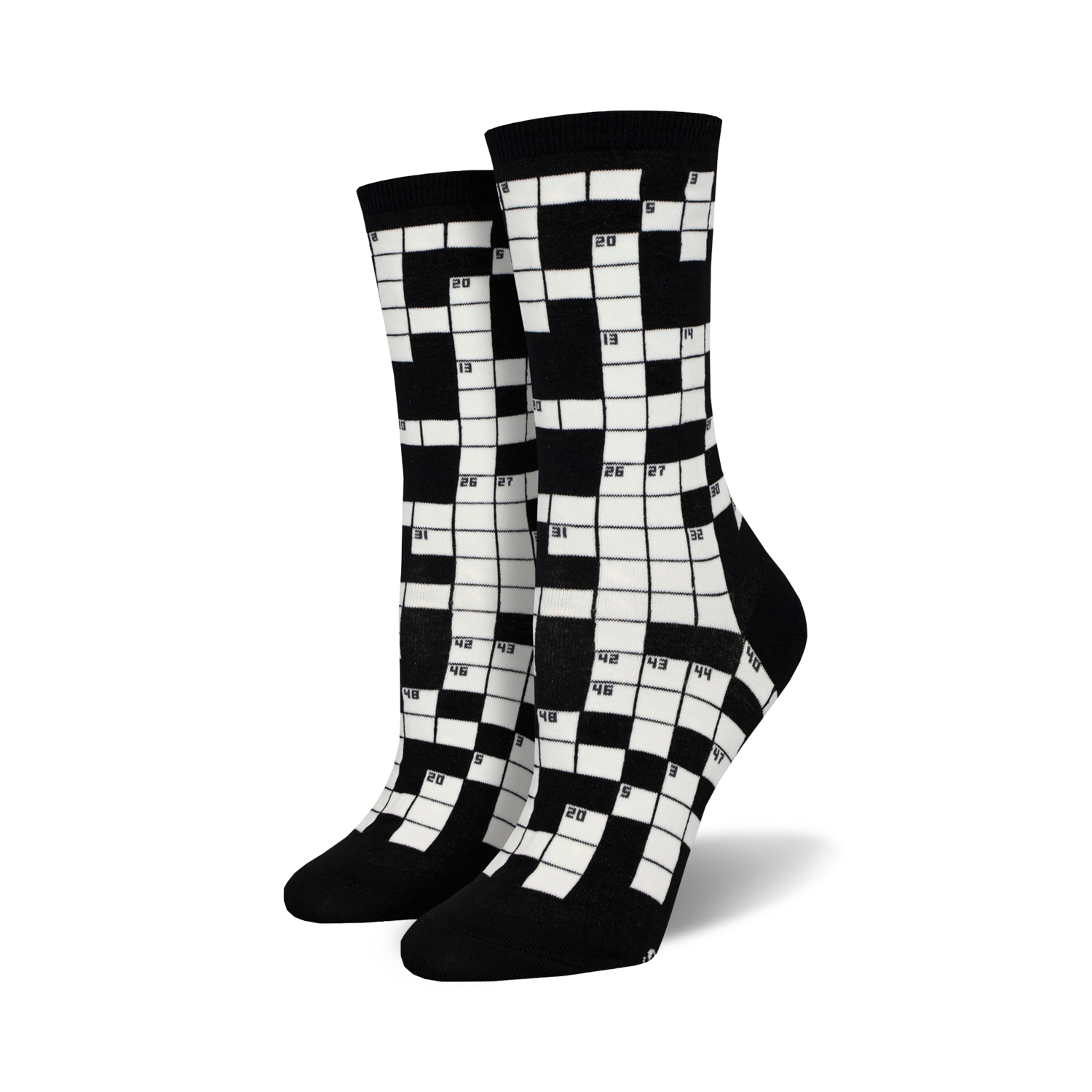 Who needs the Sunday crossword in the paper when you can wear them on your feet? Put on the crossword puzzle socks in black and white, grab a cup of coffee, and conquer the day, one word at a time. These women's crew socks will give your brain a morning workout.