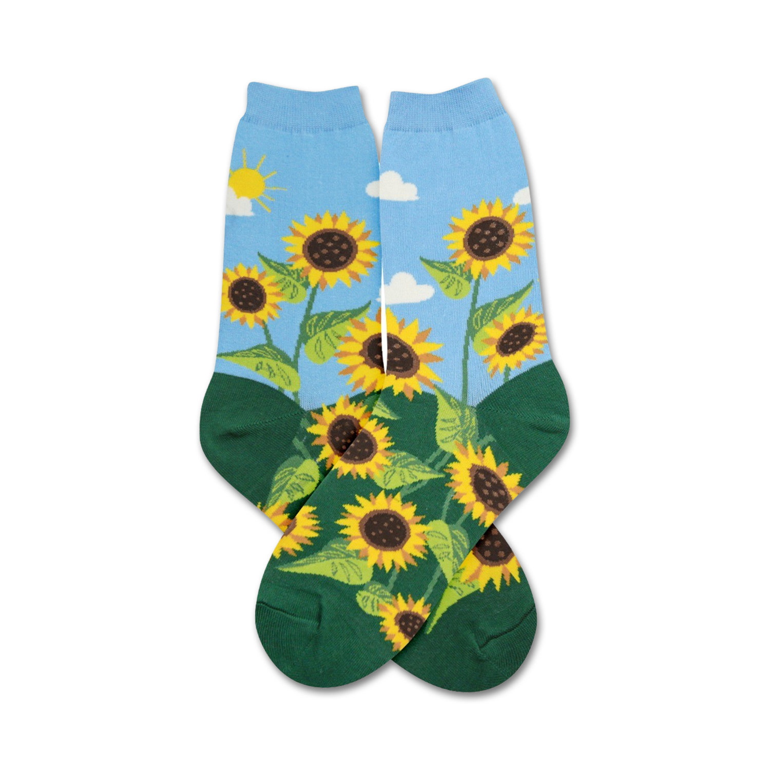 Sunflowers are nature's original smiley faces. Stride down the street in these sunflower socks. The sunny pattern and hues will turn frowns upside down and make you the ray of sunshine in your neighborhood! Let the sun shine on you, even in the dreariest of places.